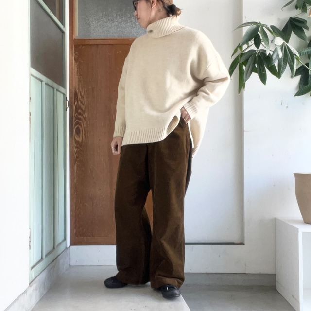 ギャレゴデスポートのワイドパンツ。 2タックのゆったりとしたサイズ感と、ウエストゴムで楽ちんなはき心地が魅力。 ワイドなシルエットですが、太すぎずきれいめに見えてくれます。 素材はコットンベースに、ほんのり光沢のあるメタリック糸が入った素材。 コットンのナチュラルさと程よい上品さを合わせ持った生地になります。 こちらはご自宅で手洗い可能です。 素材:コットン95%、ポリエステル(メタリック糸)5% カラー:beige サイズ: M、Lサイズ Mサイズ:ウエスト64~84cm ヒップ112cm 股上40cm 股下60cm 裾幅25cm Lサイズ:ウエスト66~86cm ヒップ120cm 股上41cm 股下61cm 裾幅25.5cm モデル身長:160cm(Mサイズ着用) MADE IN FRANCE 【GALLEGO DESPORTES】 Virginie GallegoとFabien Desportesによって1993年にフランスで設立。 ヨーロッパのヴィンテージやアンティークにインスパイアされたコレクションは、一目でギャレゴデスポートらしさを感じます。 根強いファンも多く、着るごとに愛着が湧くアイテムばかりです。 シンプルかつ計算された緻密なパターンにより、着る人の美しさと個性を引き立てます。 愛情に溢れるこだわりの上質素材は、着る人を幸せにしてくれます。 ご注意】 ・撮影状況、ご使用のスマートフォン、パソコン環境により、実物と多少色が異なる場合がございます。 ・在庫データは定期的に更新しておりますが、実店舗と在庫を共有しております。 ご注文のタイミングによっては欠品・完売となりご用意が出来ない場合がございます。 その場合は、大変申し訳ありませんがキャンセル扱いとさせていただきます ・オンラインショップでのお買い上げはポイントカードの対象外です。 ポイントについては[email protected]に詳細をお問い合わせください。 ・梱包は小さく折りたたんでの発送となります。 プレゼント包装をご希望の場合は、梱包のサイズが変わる可能性があるので、ご購入の前に一度お問い合わせからご連絡をお願いいたします。