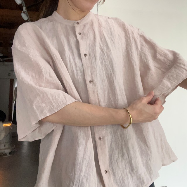 SUSURIのリグシャツ。 空気を取り込み広がるシャツのデザイン。 海原の帆をイメージしたアイテムになります。 スタンドカラーにゆったりとした身幅のあるデザイン。 きちんと感もありつつ、お袖のほんのりフレアが女性らしい印象です。 手で捻ってつくるショートパスタのイメージで、不均一なかたちにデザインしたボタンがアクセント。 素材は、荒めのローン生地を時間をかけて染め、天日で乾かし仕上げる静岡のリネンを使用しています。 *素材の特性上、ネップやシワ、ヨレや畝があります *素材の特性上、着⽤やクリーニングなどによる収縮や⽩化があります 素材:リネン100% カラー:pink サイズ:1サイズ 着丈:59cm 身幅:59cm 裄丈:54cm 袖口幅:28cm MADE IN JAPAN 【SUSURI】 デザイナー、斎藤龍也・あい夫妻が手掛けるススリ。 そのアイテムはまず女性の雰囲気を取り入れたメンズのパターンを引き、それをもとにレディースを制作するという珍しい手法でつくられています。 着心地やサイズバランスを大切にしながらもテーマ性の強いコレクションは 別世界の旅に連れて行ってくれるかのような物語性に満ちています。 ひとつひとつの行程に妥協せず、丁寧に作られるススリのプロダクト。 天然素材を随所に用いたり、江戸時代から続く染色工場にて 職人に手作業の染色をほどこしてもらうなど素材にもこだわり、 生地やデザインに合わせて全国各地の工場にて染色や縫製を行っています。 SUSURI 2026 SPRING&SUMMER 『BRINGING ME OUT OF ROOM 』 童話 ピノッキオがテーマ。 好奇心に満ちた無垢な木の人形が人間になりたいと願い、 誘惑に負け失敗を幾度も重ねながら、 弱さや勇気を知り変化、成長していく旅の物語。 奇妙な趣と普遍の道理、ロマンティックと素朴、空想と事実、女性と男性、 昨季からのキーワードを探す旅が続きます。 【ご注意】 ・撮影状況、ご使用のスマートフォン、パソコン環境により、実物と多少色が異なる場合がございます。 ・在庫データは定期的に更新しておりますが、実店舗と在庫を共有しております。 ご注文のタイミングによっては欠品・完売となりご用意が出来ない場合がございます。 その場合は、大変申し訳ありませんがキャンセル扱いとさせていただきます。 ・梱包は小さく折りたたんでの発送となります。 プレゼント包装をご希望の場合は、梱包のサイズが変わる可能性があるので、ご購入の前に一度お問い合わせからご連絡をお願いいたします。