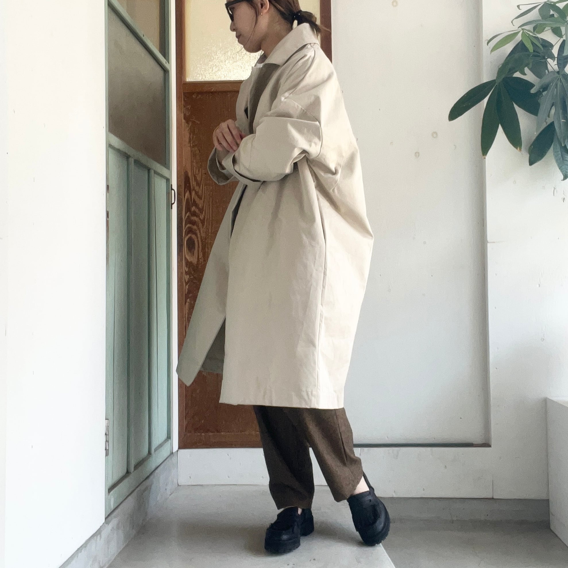 カラーはグレー味がかった薄い色味のベージュで、春と秋に重宝します。