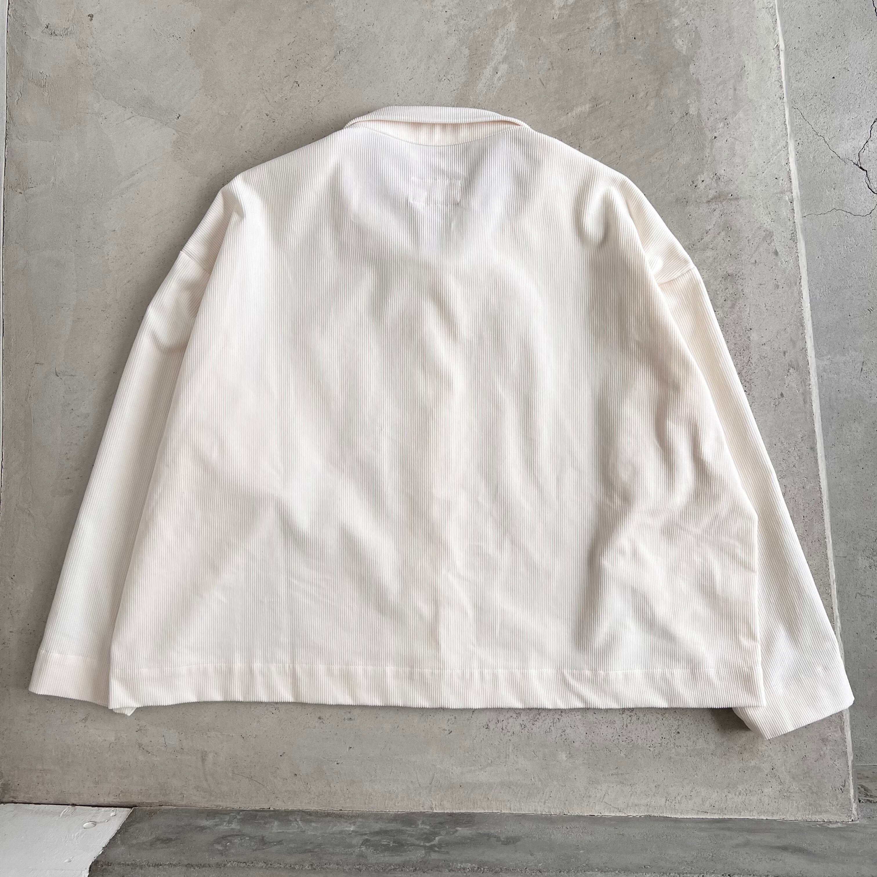 ボックスシルエットに小さめの衿、ショート丈のバランスが素敵な一枚です。