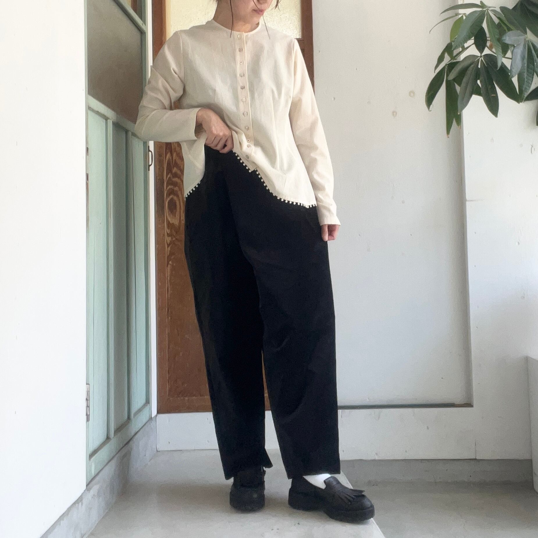 *素材の特性上、ネップやシワ、ヨレや畝、⾊差がある箇所があります