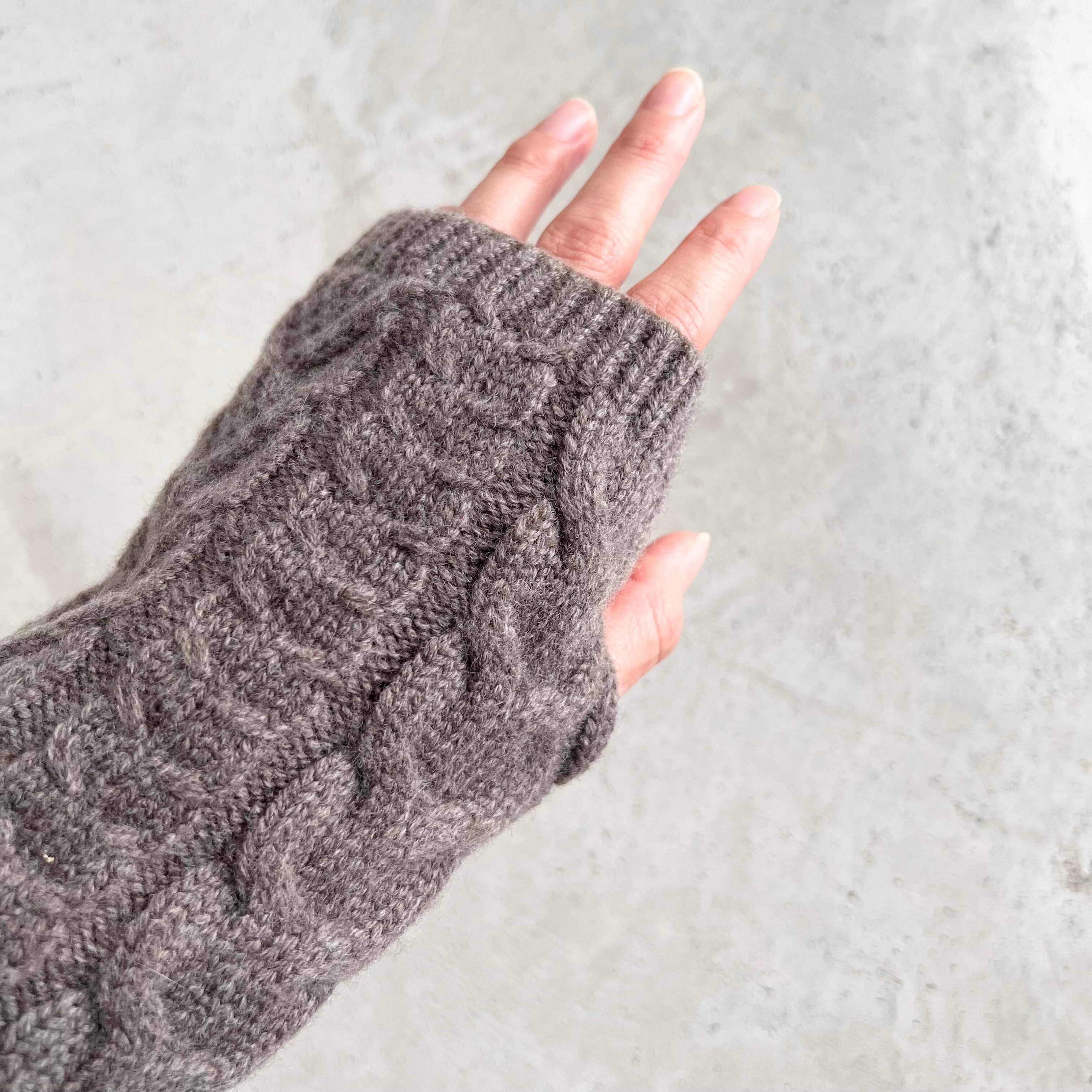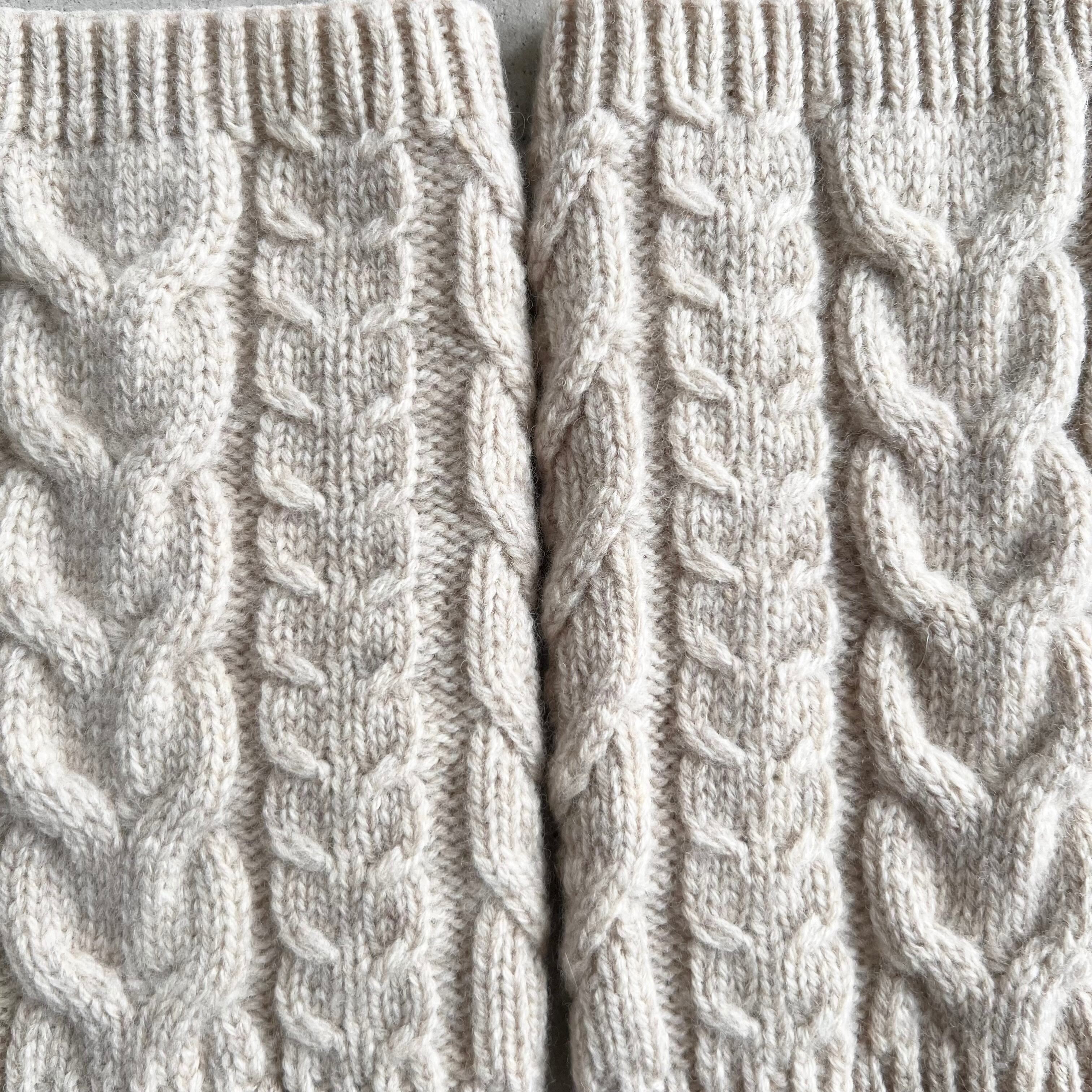 さまざまなケーブル編みがポイントになったアームウォーマー。