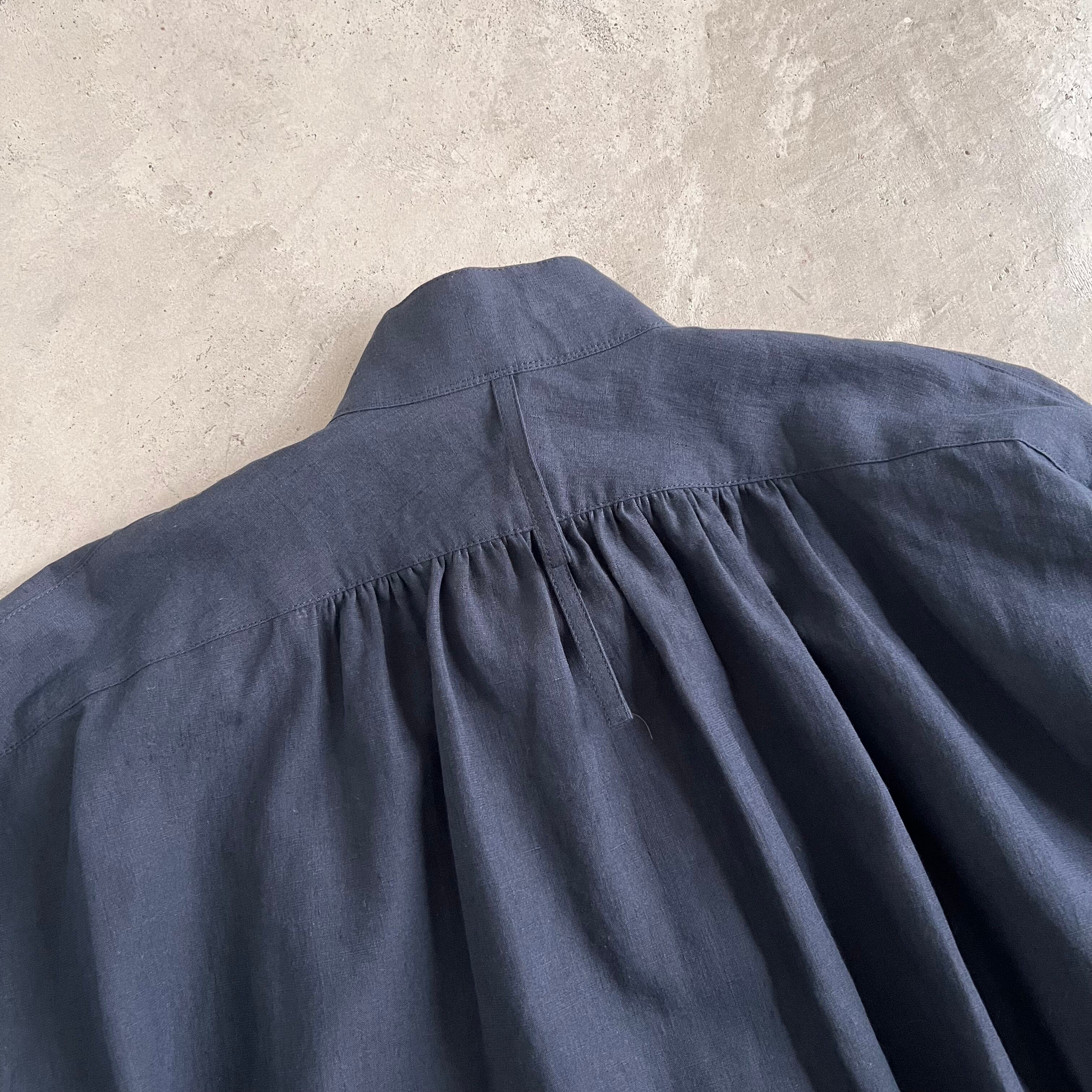 素材はリネンにコットンを混ぜて番⼿や密度、節の調整などを試⾏錯誤しながら、コシがあってほんの僅かに光沢を持った静かに主張するオリジナル⽣地。