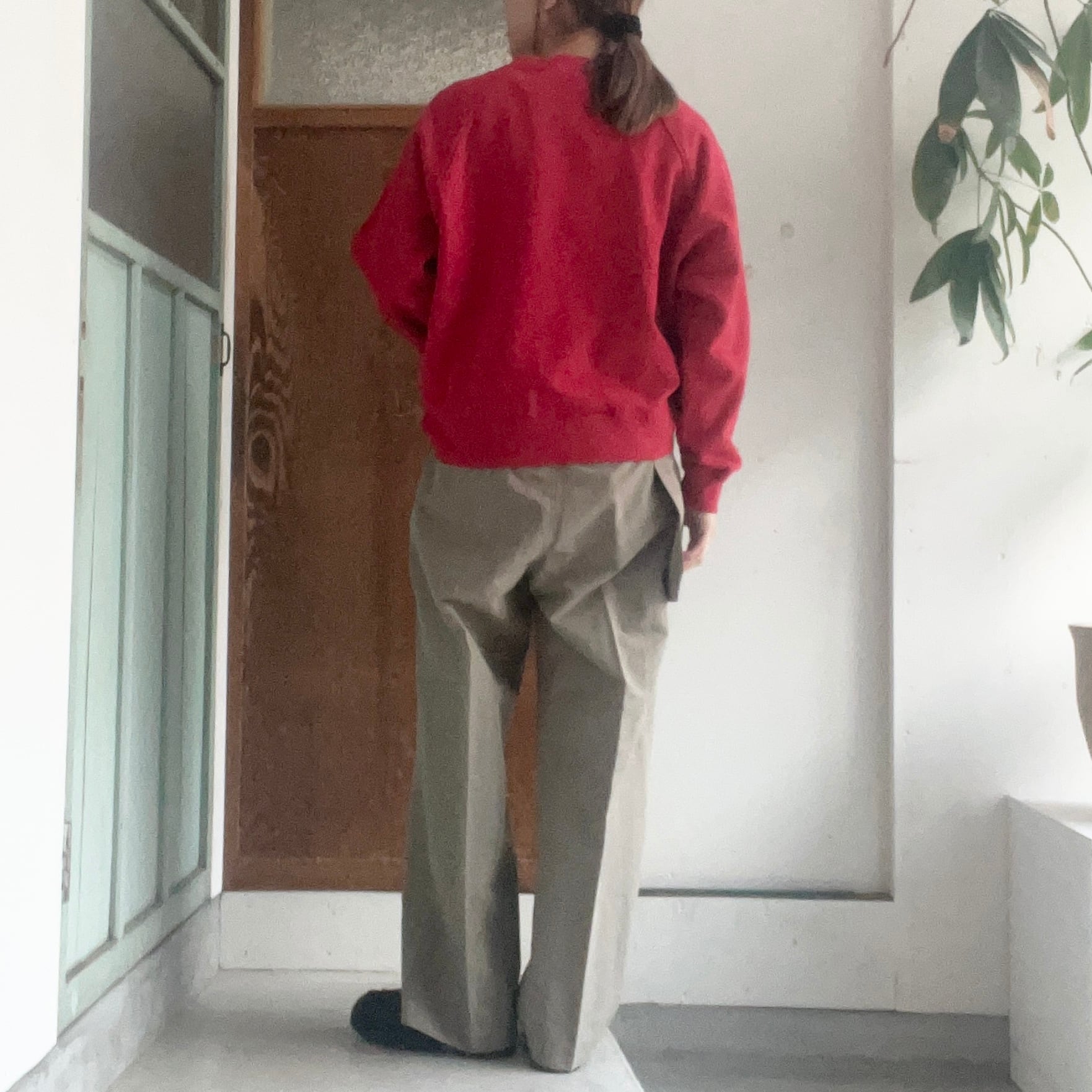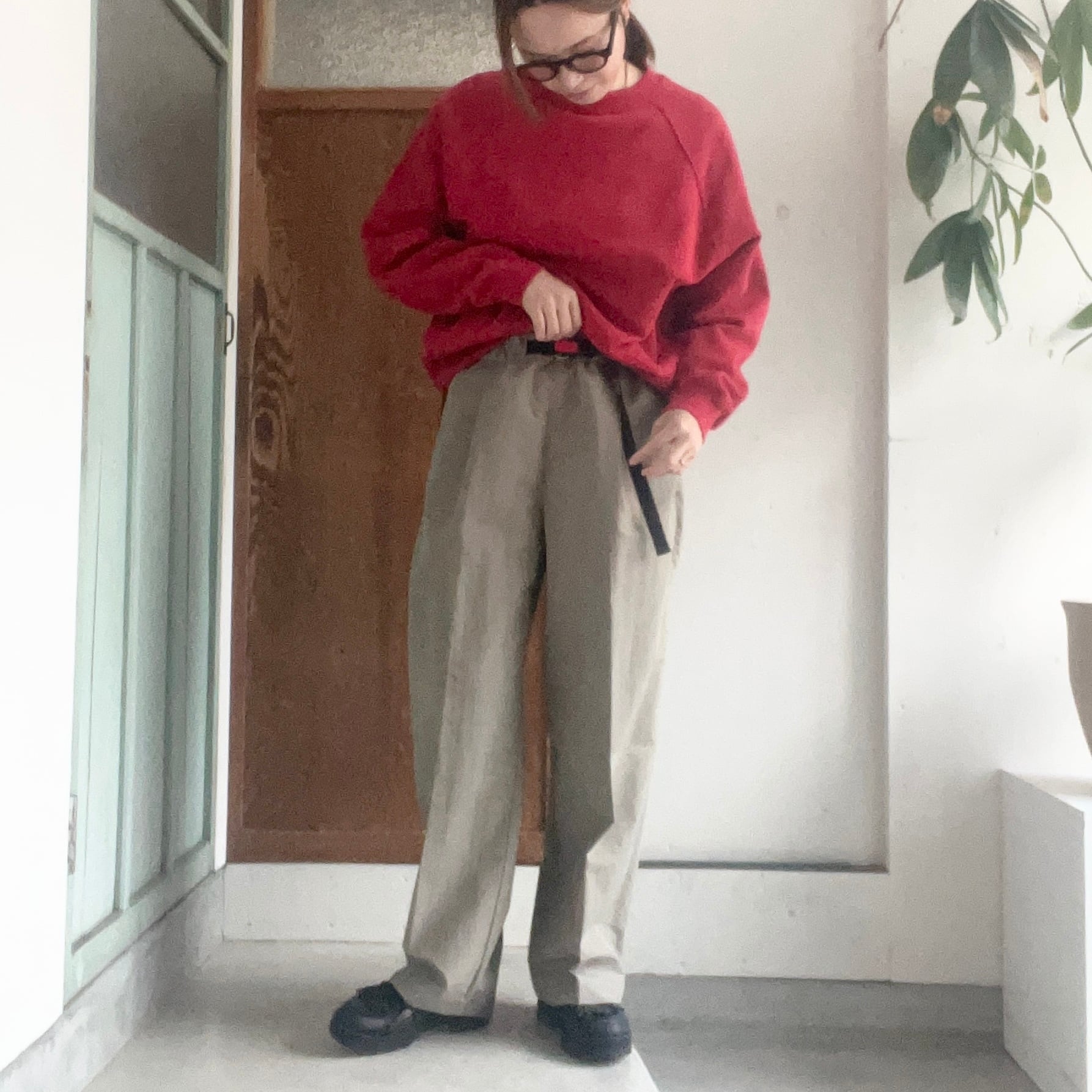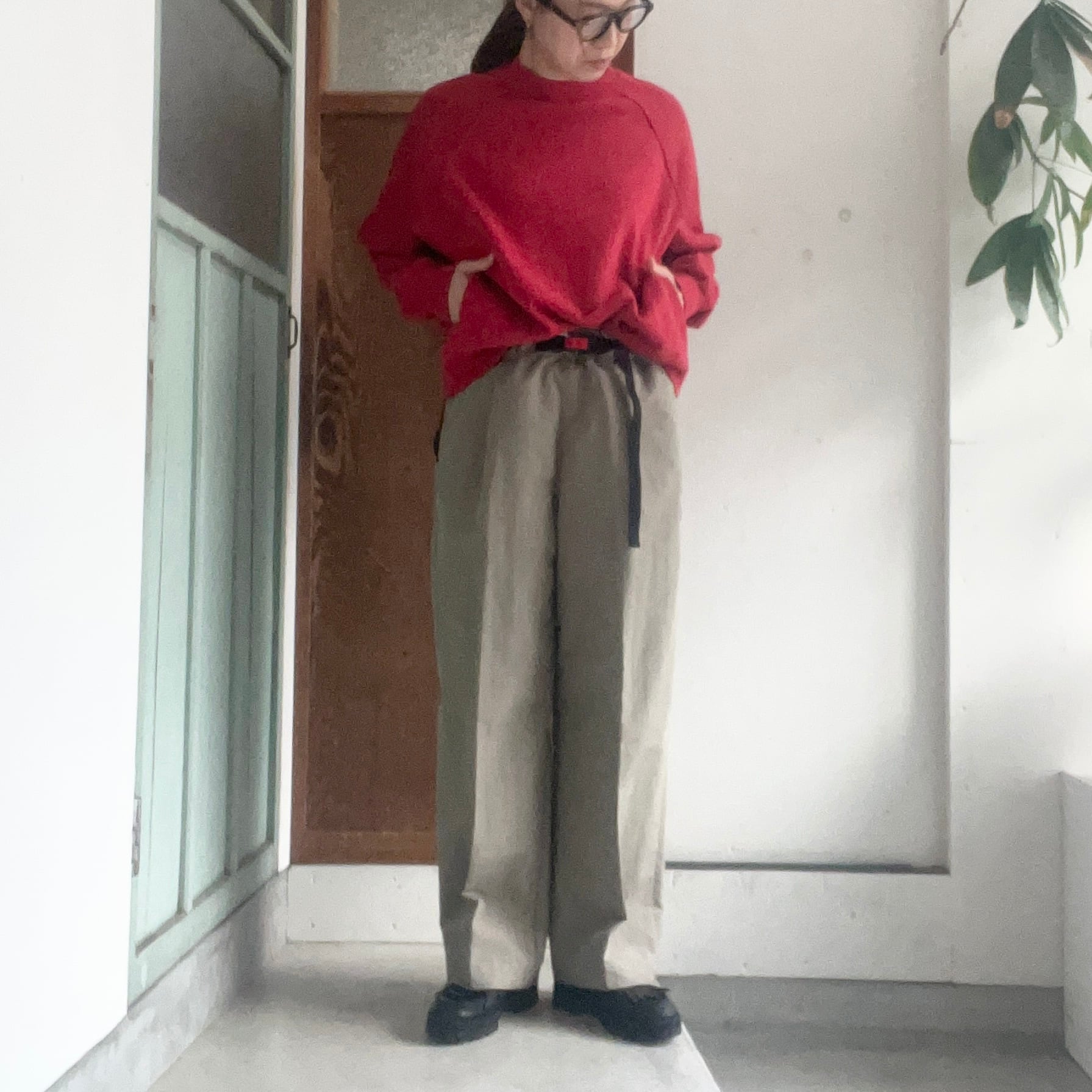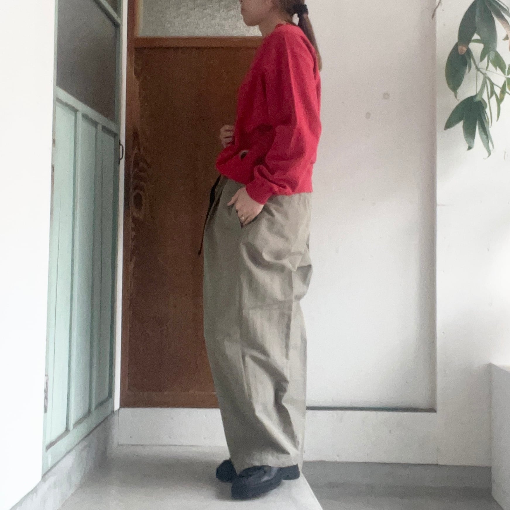 ストレートのシルエットのイージーパンツです。