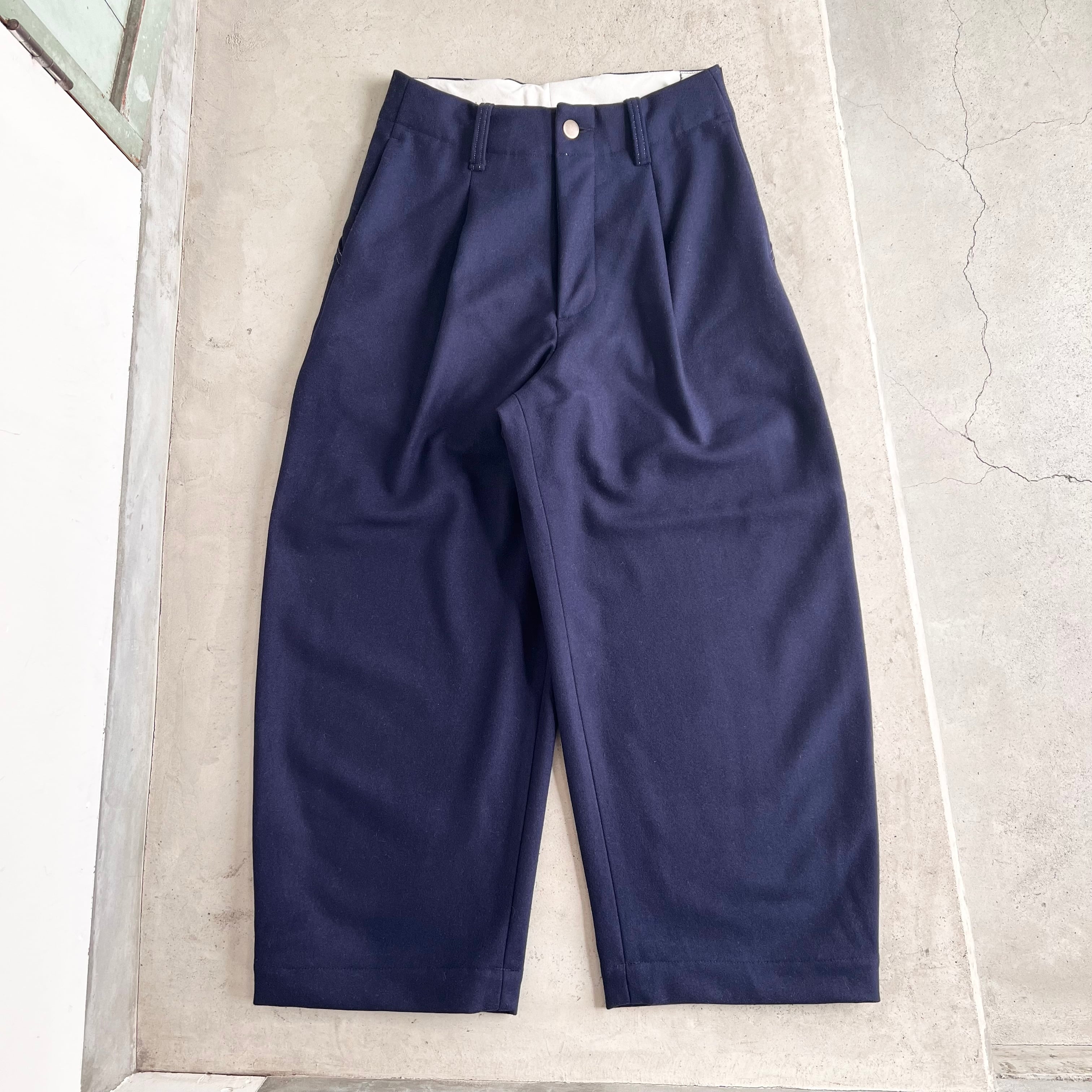 お尻が大きく見えてしまうワイドパンツの難点を改良して、横からのシルエットに特にこだわってつくられたパンツです。
