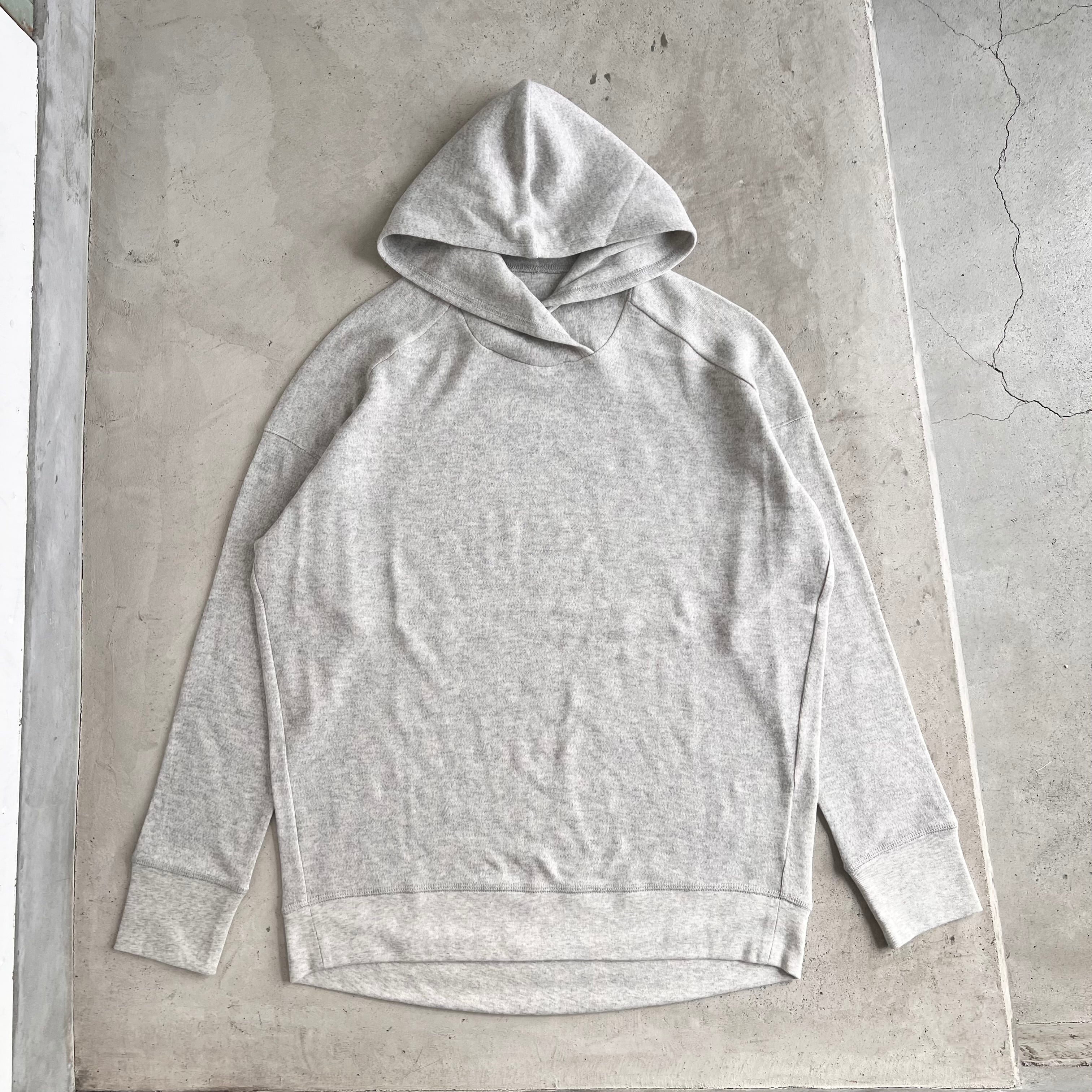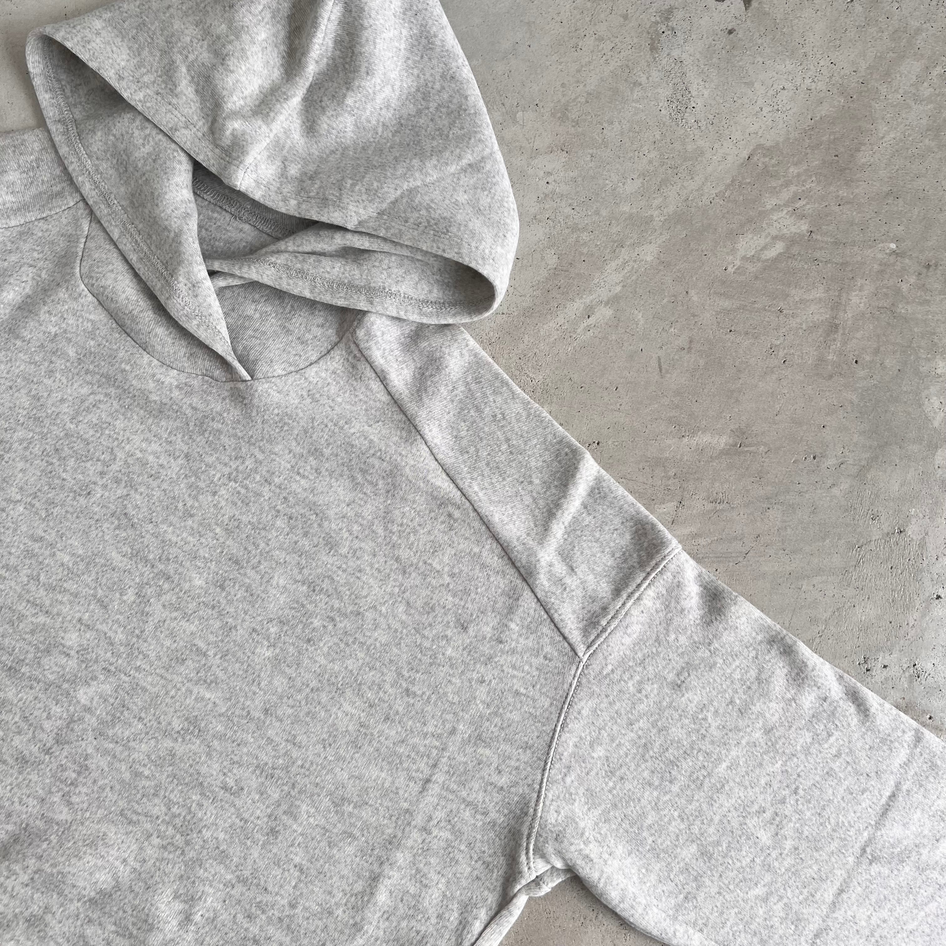 こちらは、ネックの重なりにこだわった、フーディーのデザインのゆったりシルエット。