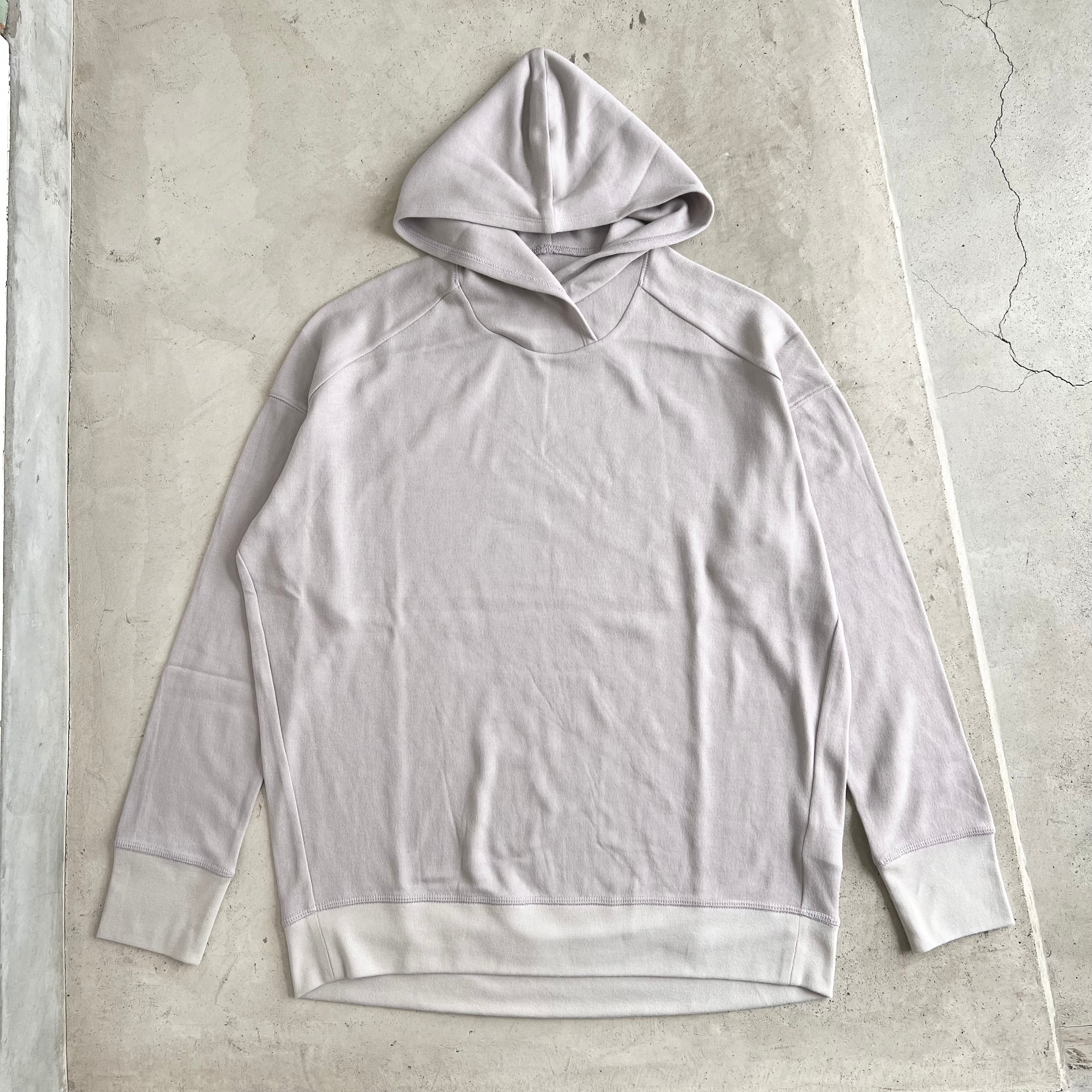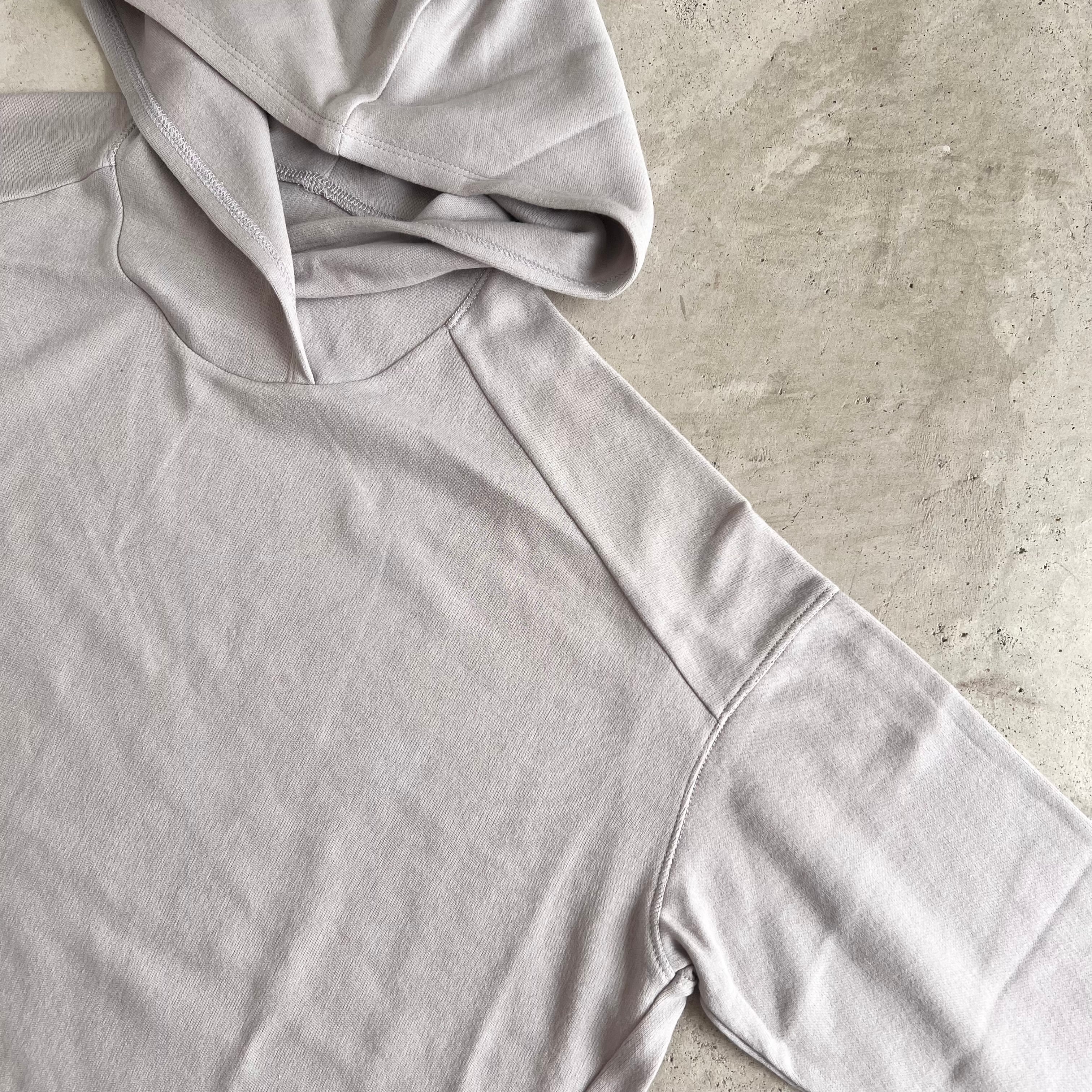こちらは、ネックの重なりにこだわった、フーディーのデザインのゆったりシルエット。