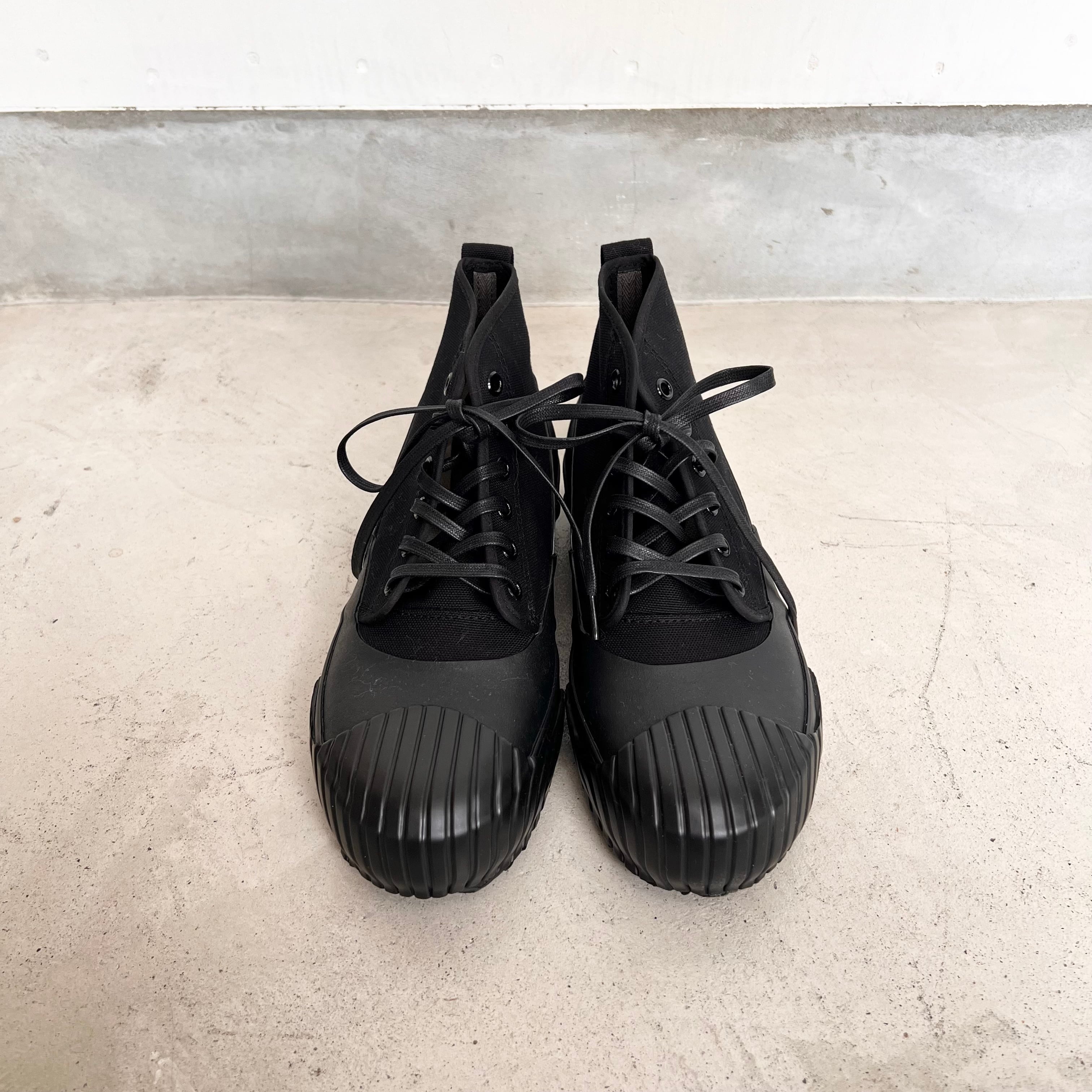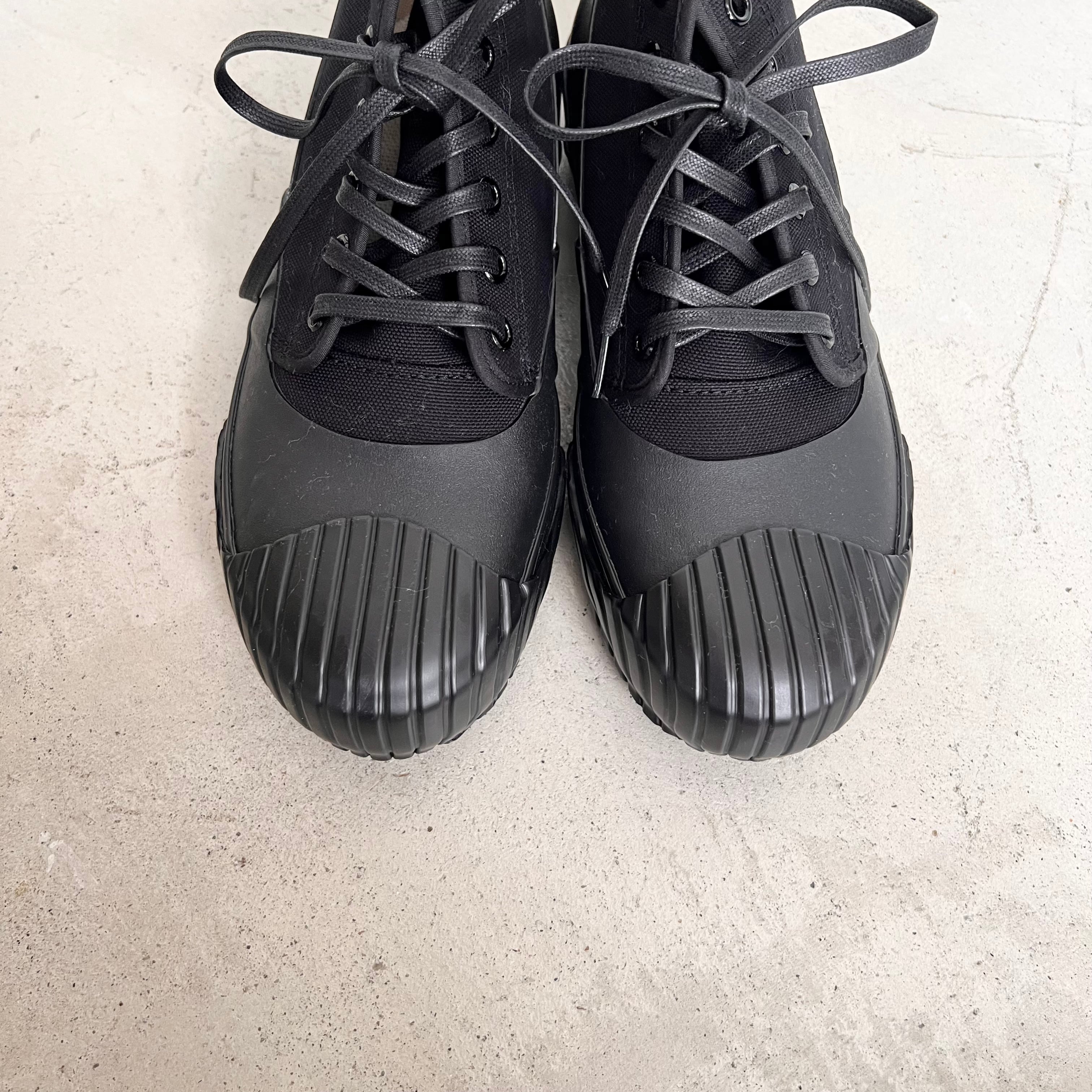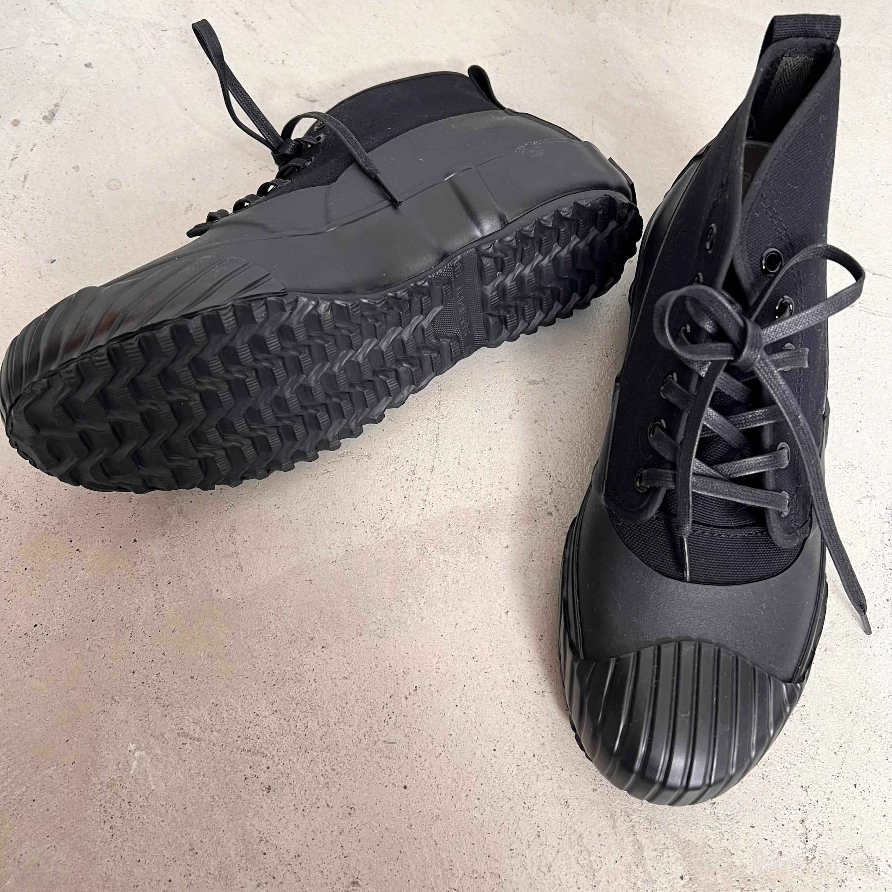アッパーのキャンバス地にラバーを張り合わせた全天候型のスニーカーです。