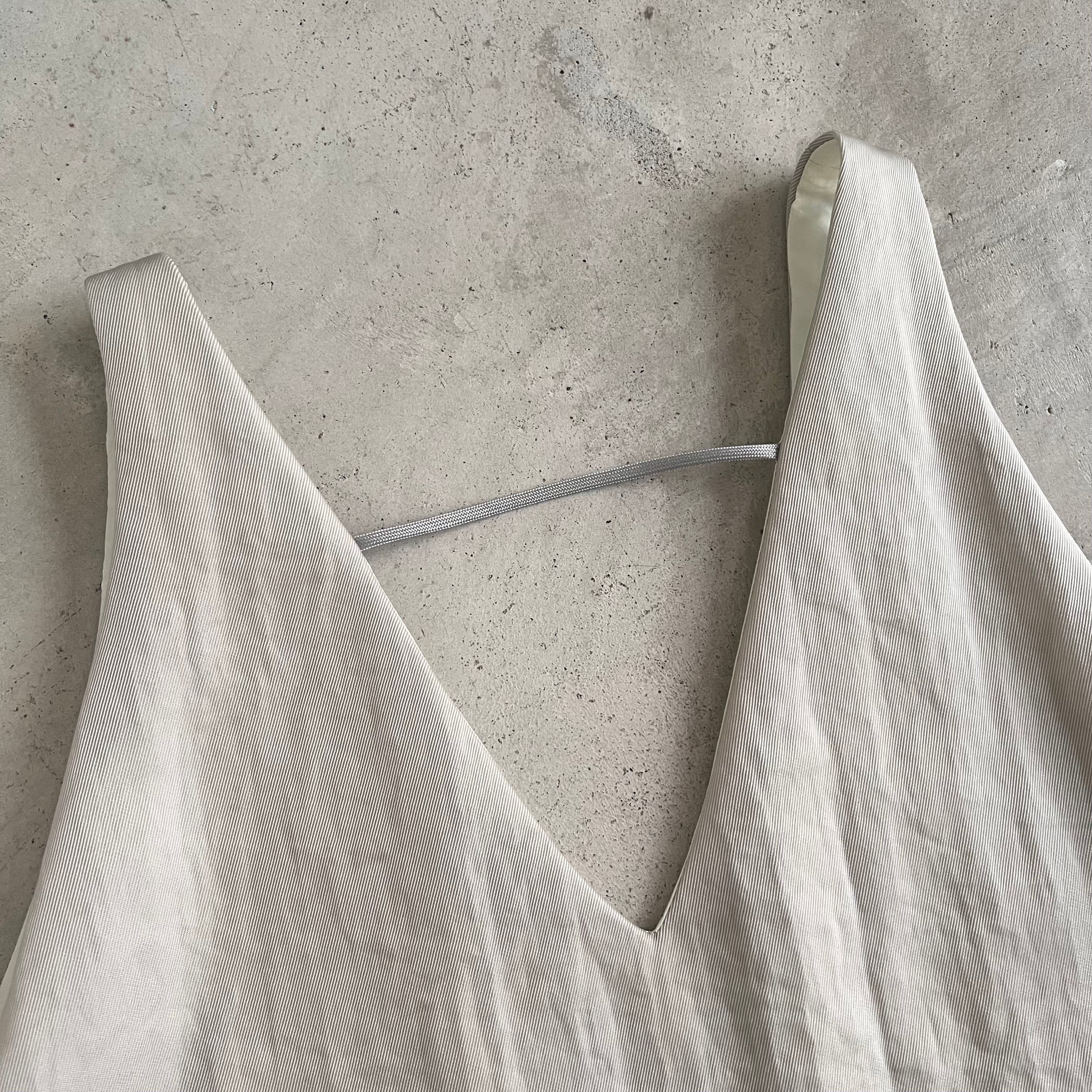 深めなVネックで、ゆったりサイズのプルオーバーベストです。