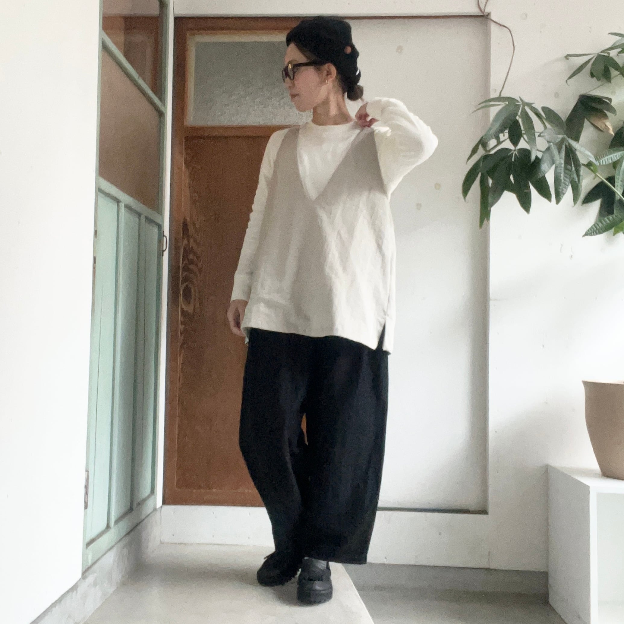 身幅があるので、今時期のニットとのレイヤードもおすすめ。