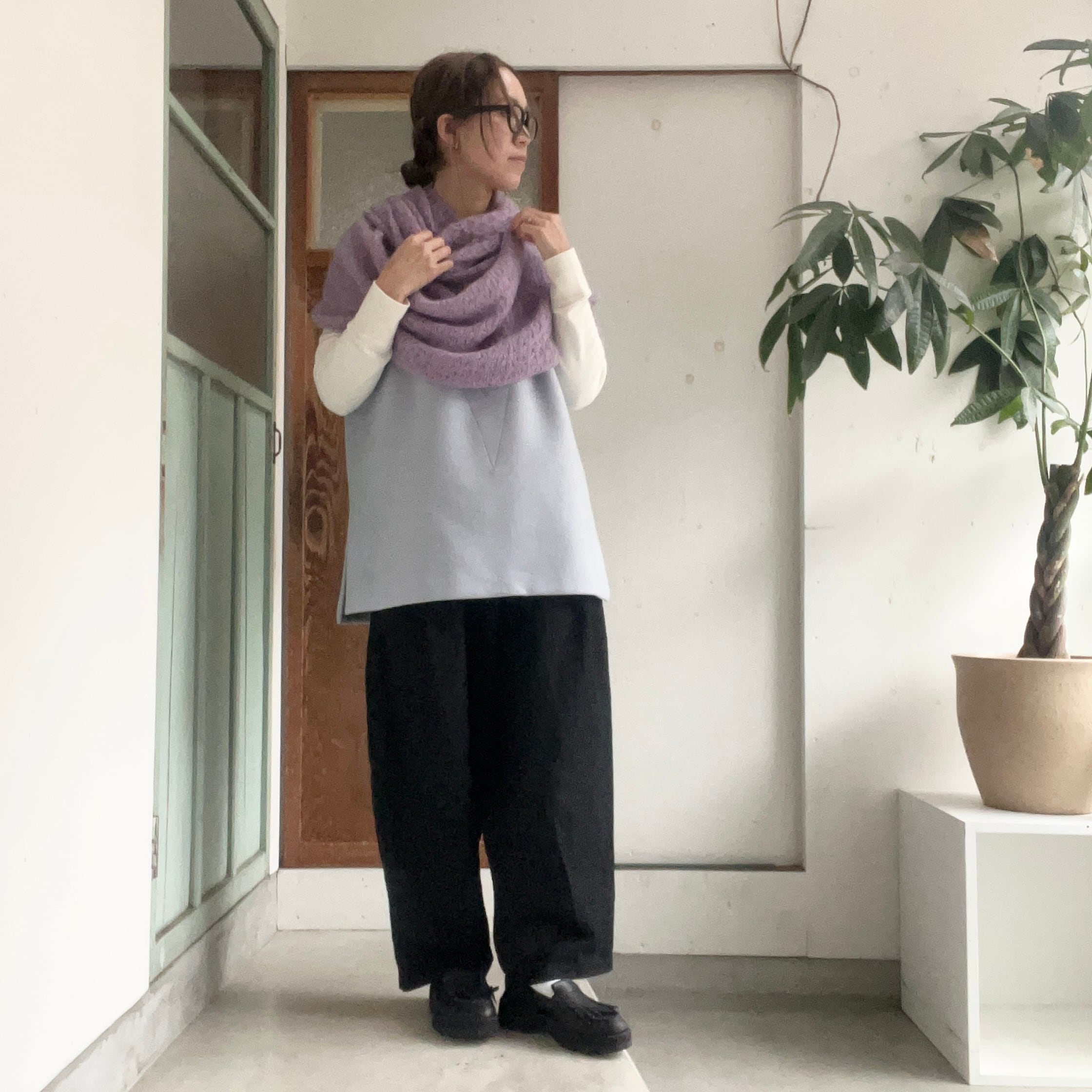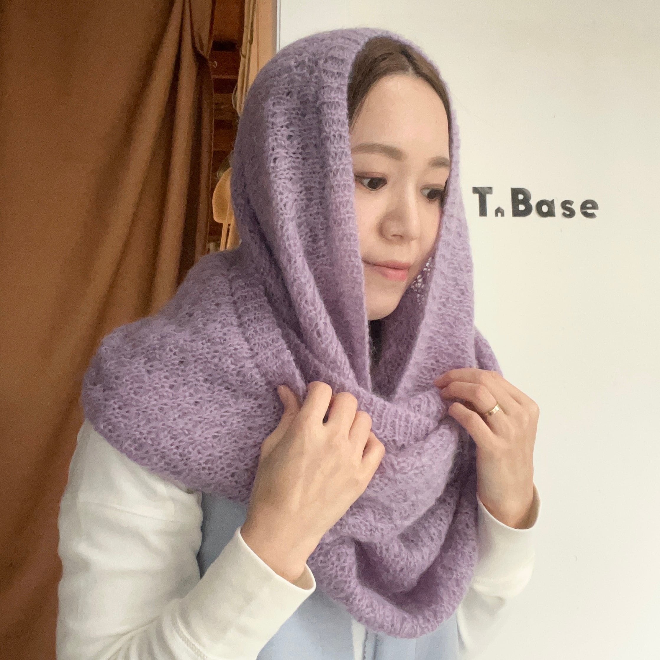 モヘアを使用した編地が素敵な大判サイズのスヌードです。