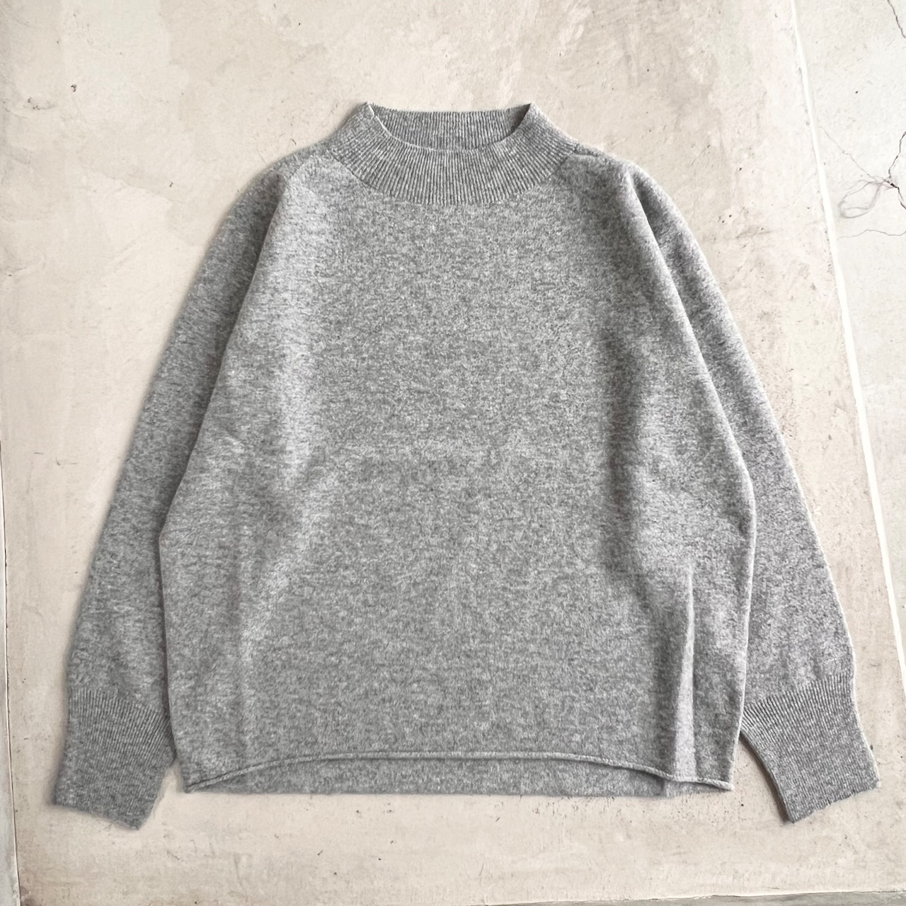 ホールガーメントでシーム線無く編みたてられた、ハイネックのニットです。