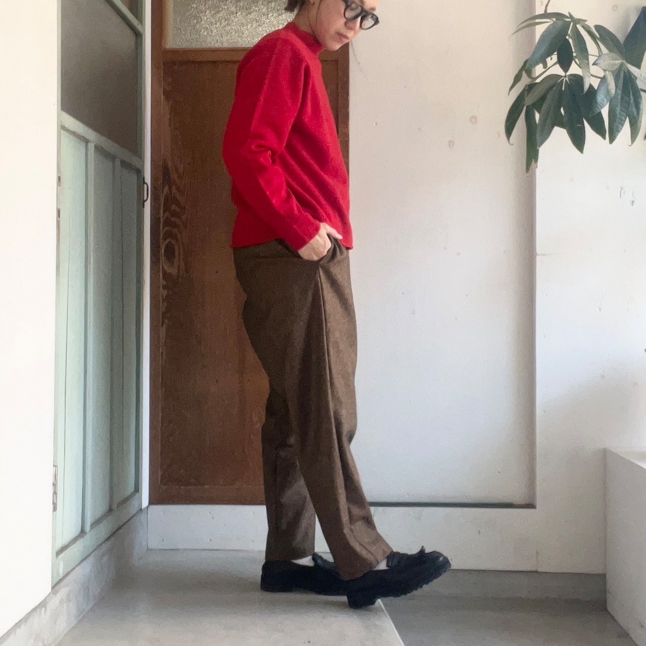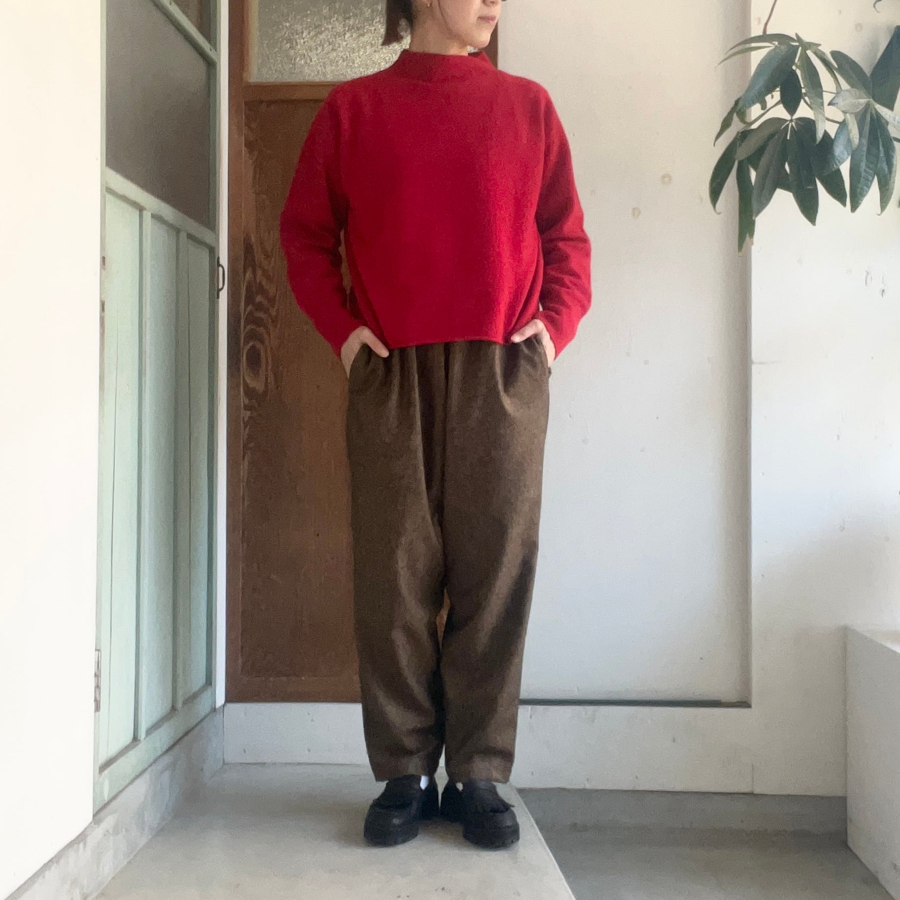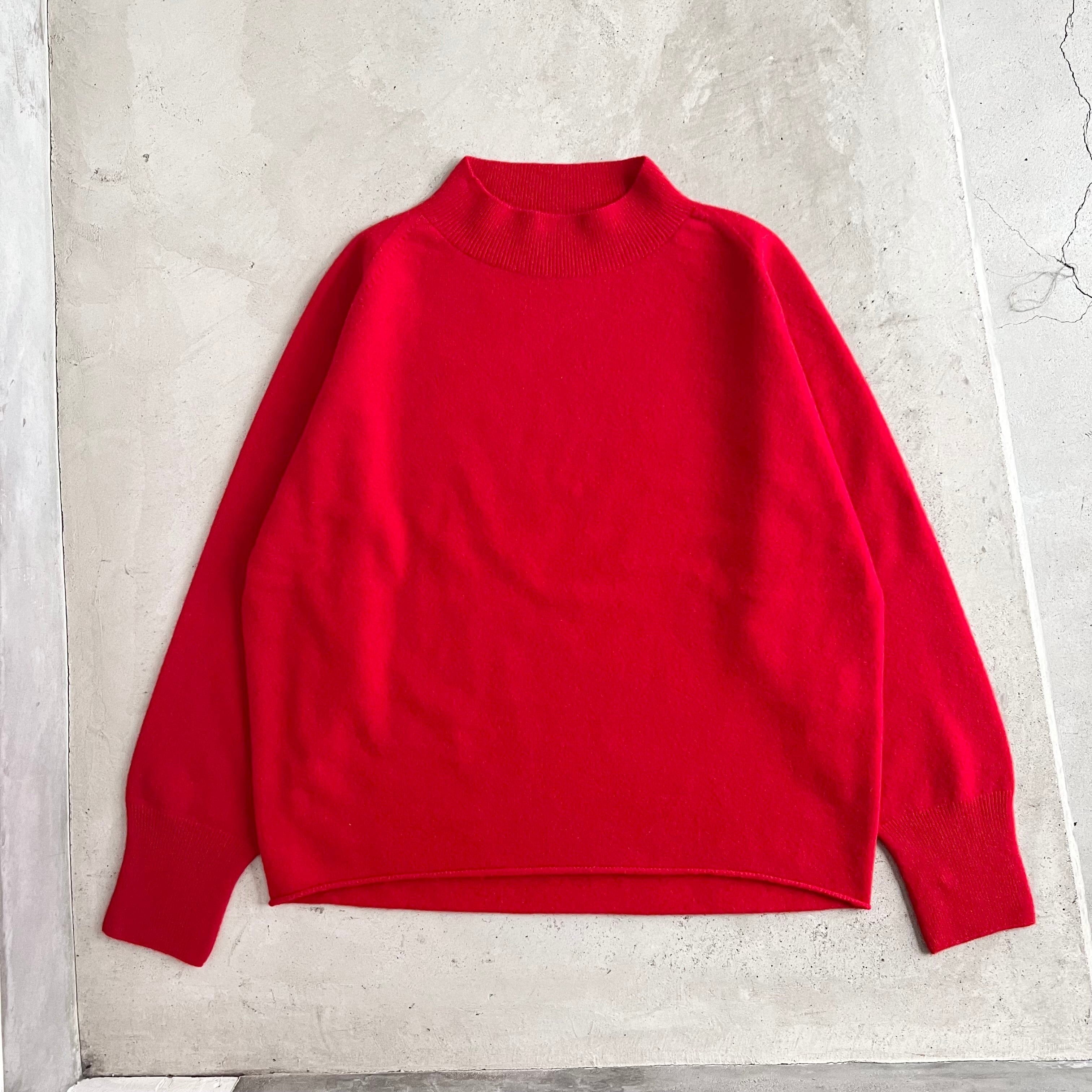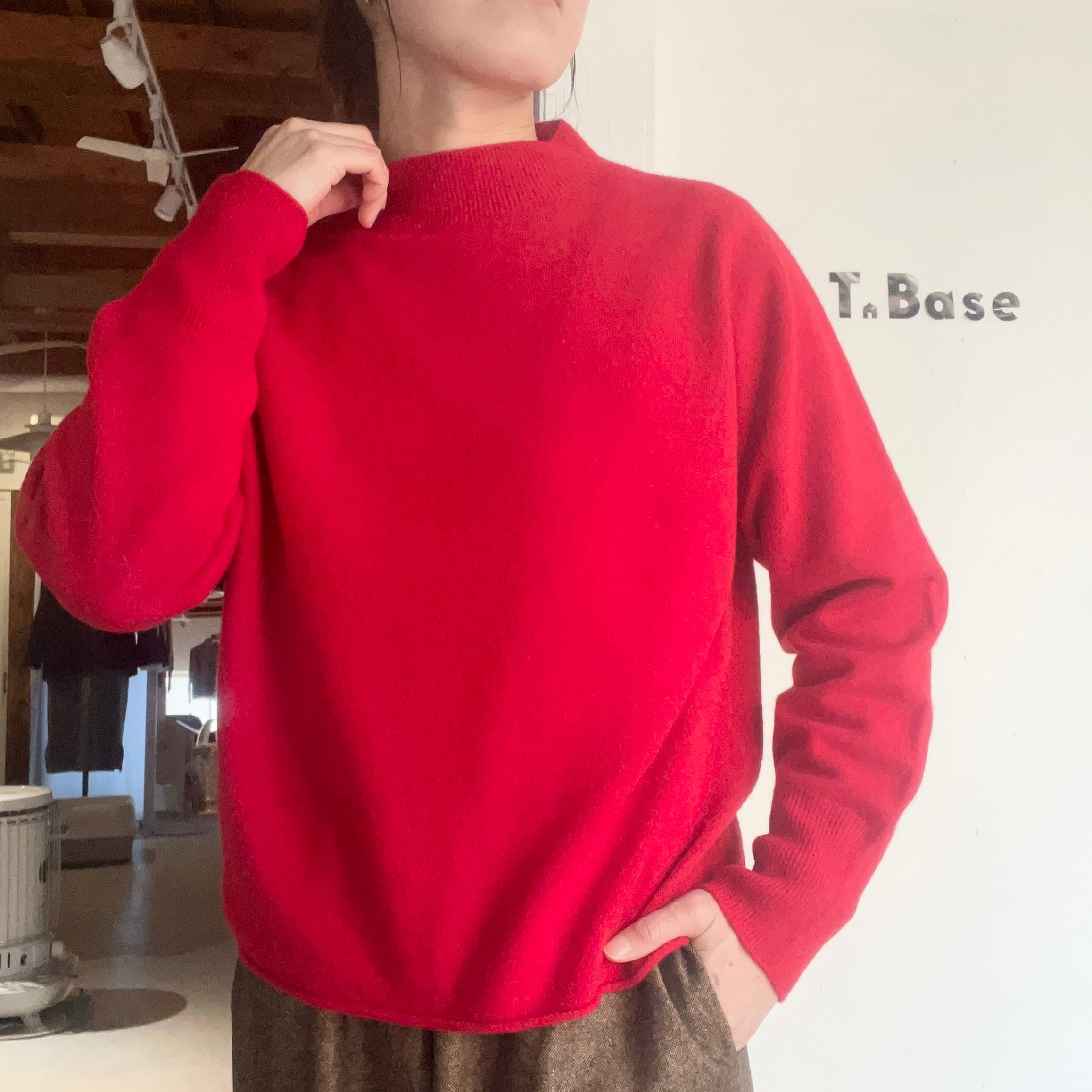 ホールガーメントでシーム線無く編みたてられた、ハイネックのニットです。