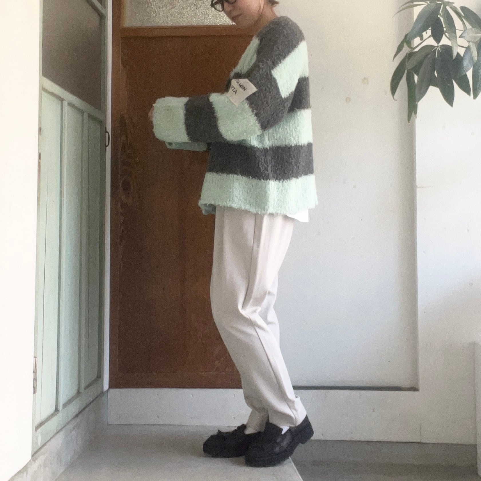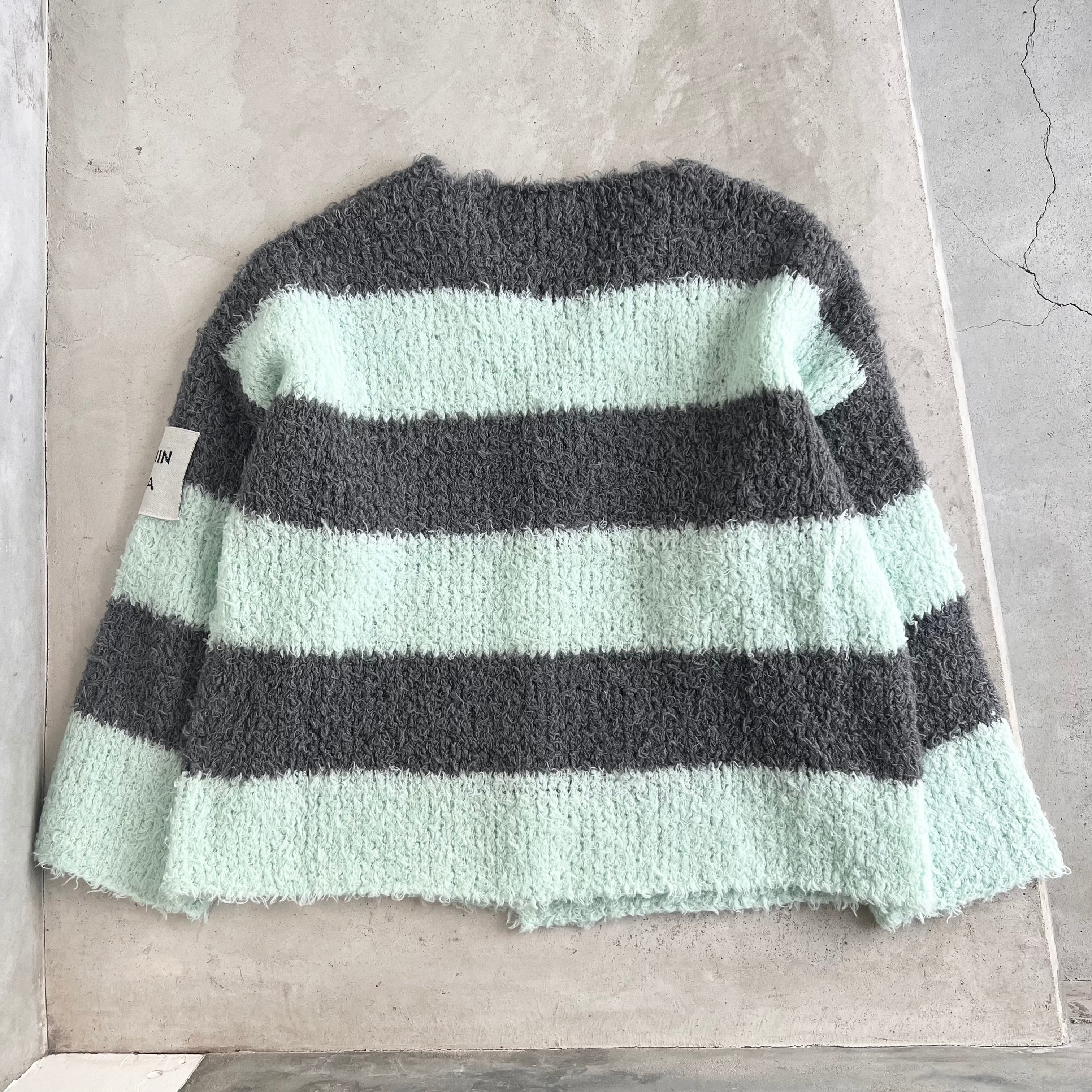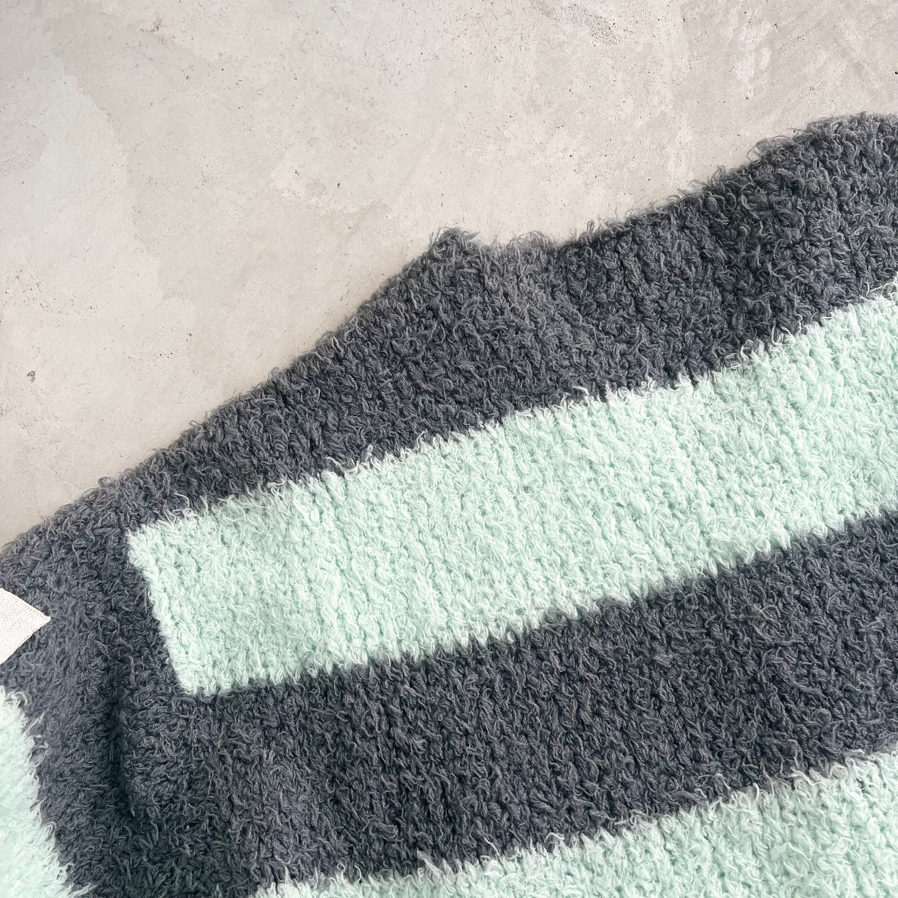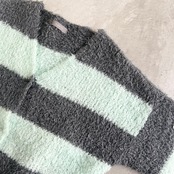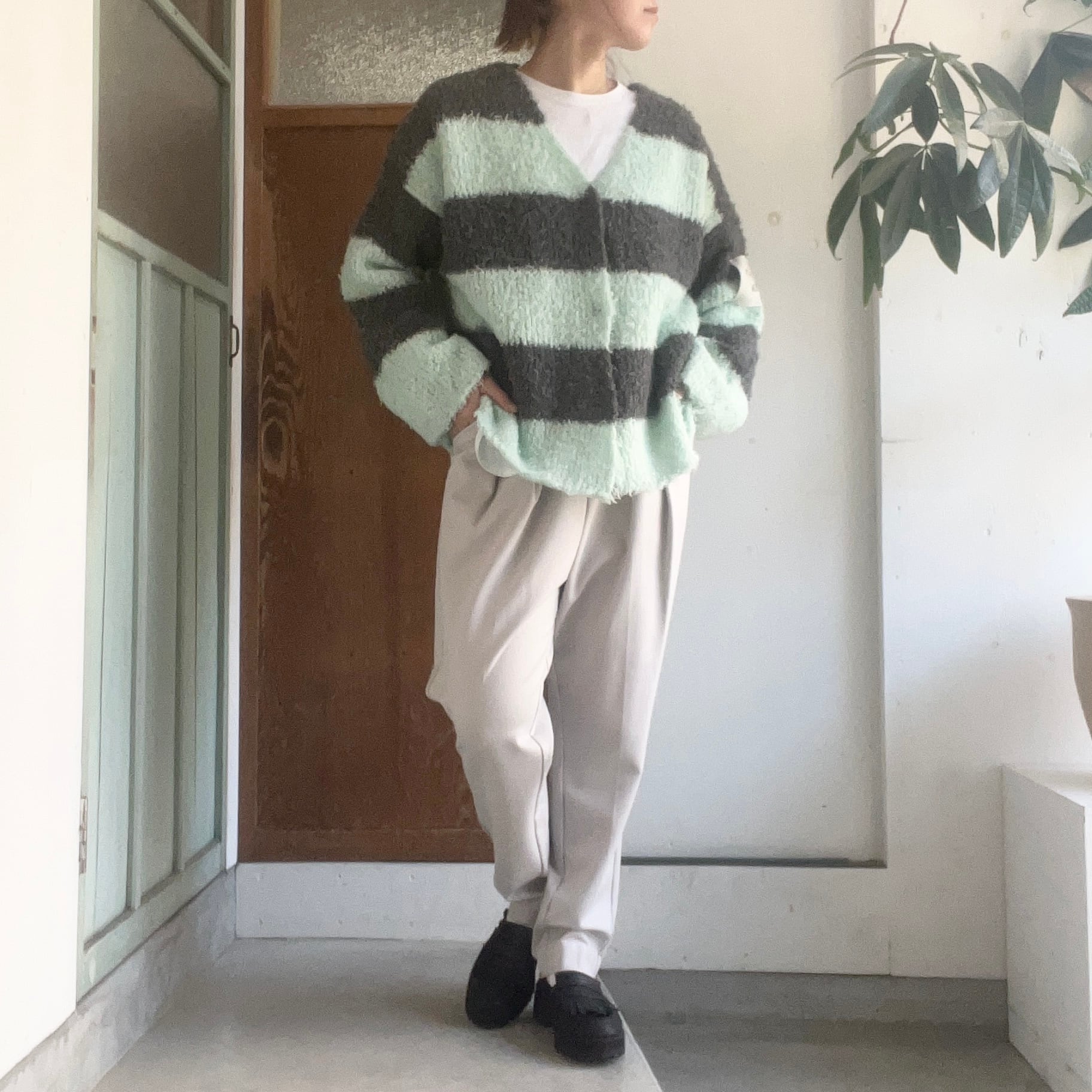 太めボーダーが印象的なゆったりサイズのニットカーディガンです。