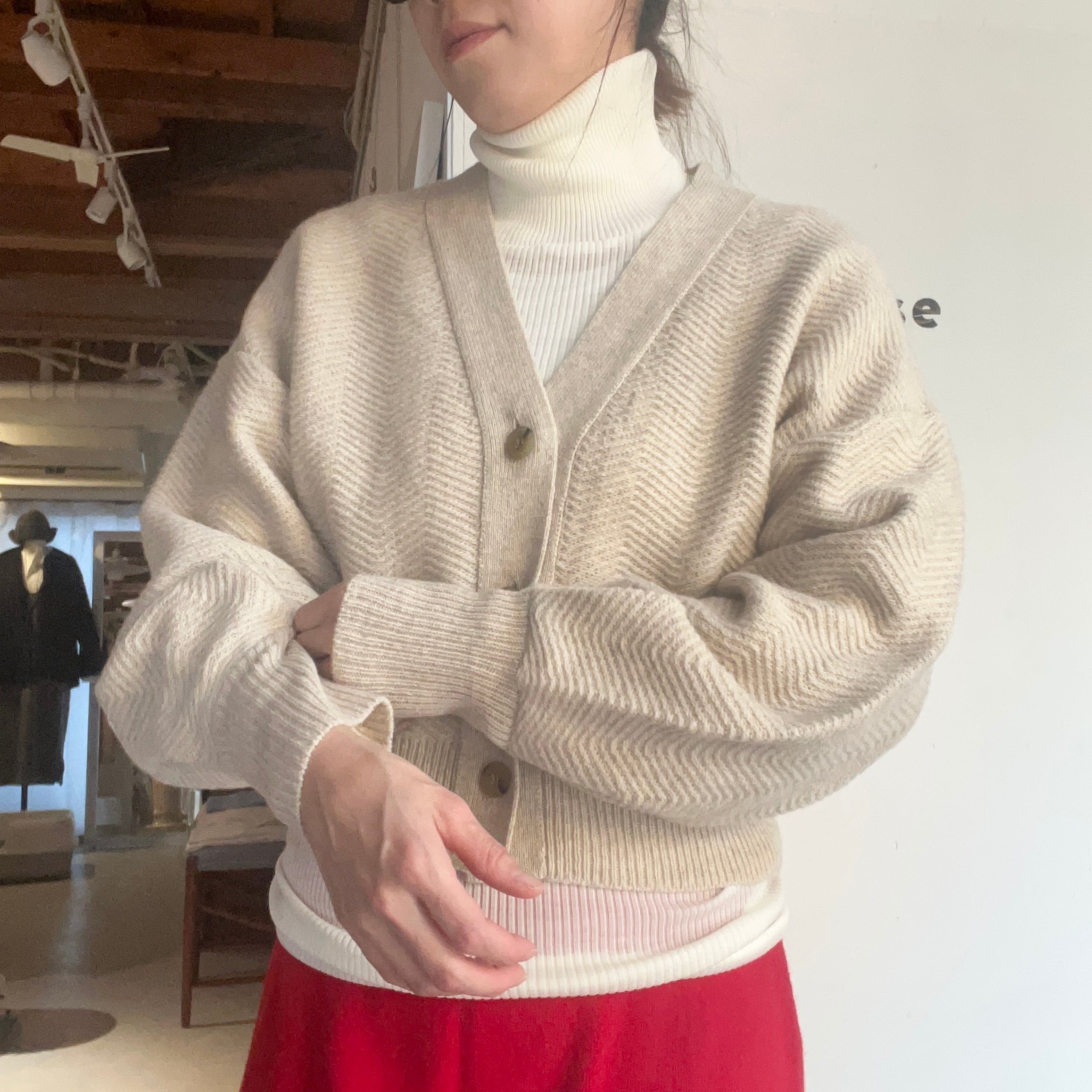 カーディガンはこのブランドを立ち上げるきっかけとなったKNITにしかないアイテムで、