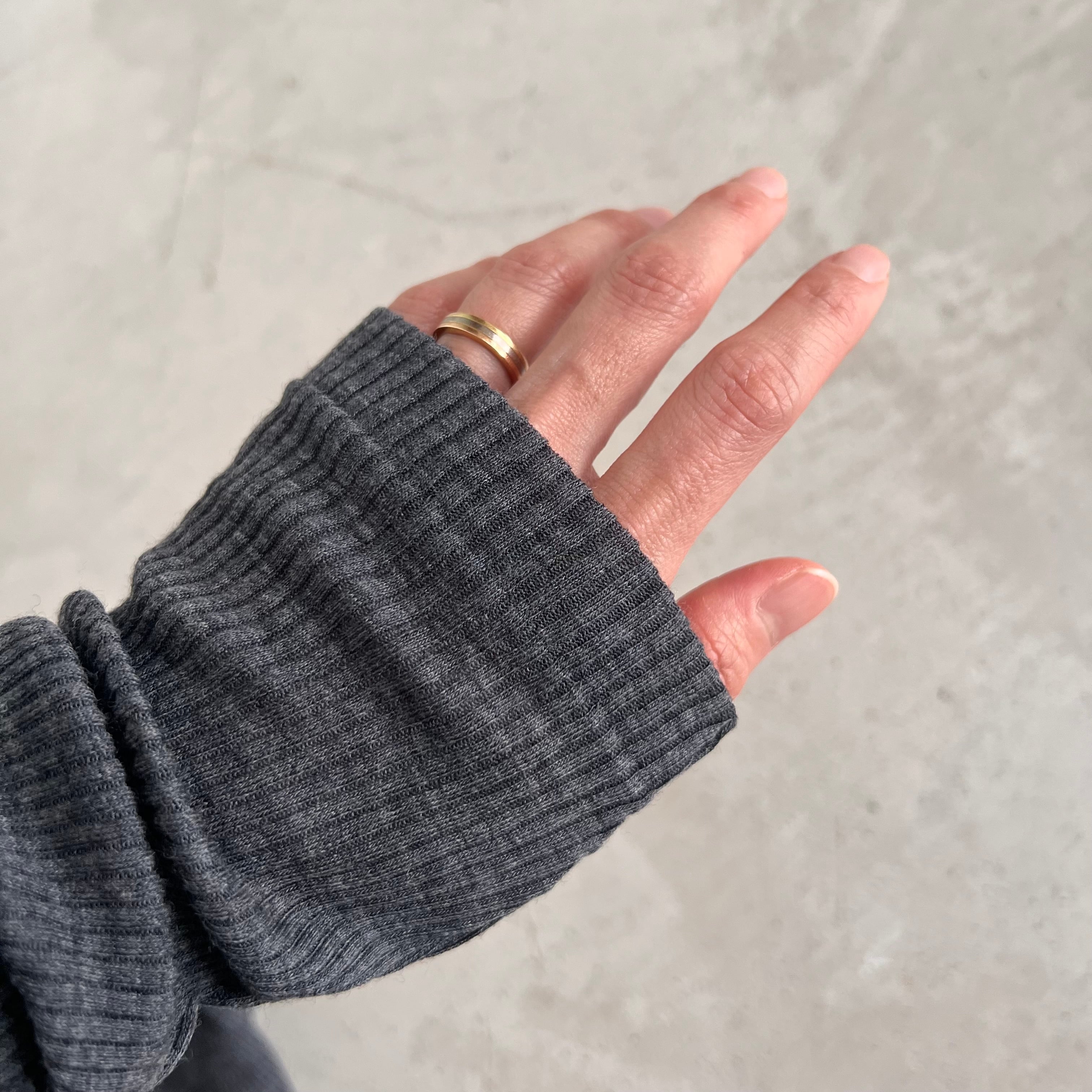 チクチク感がなく、ご自宅お洗濯可能なウール素材のリブカットソーです。