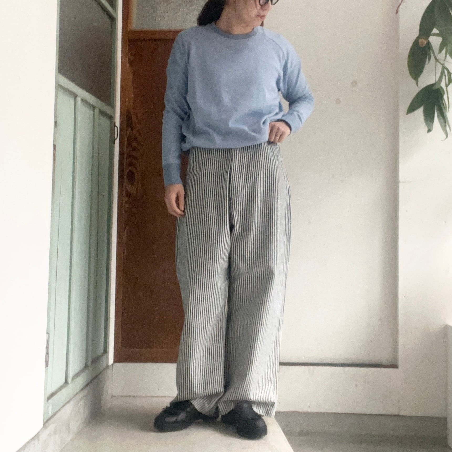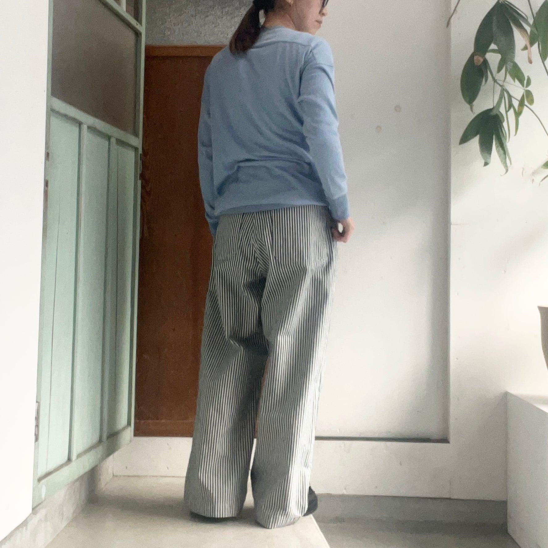薄手ながらしっかりした生地のヒッコリー柄になります。