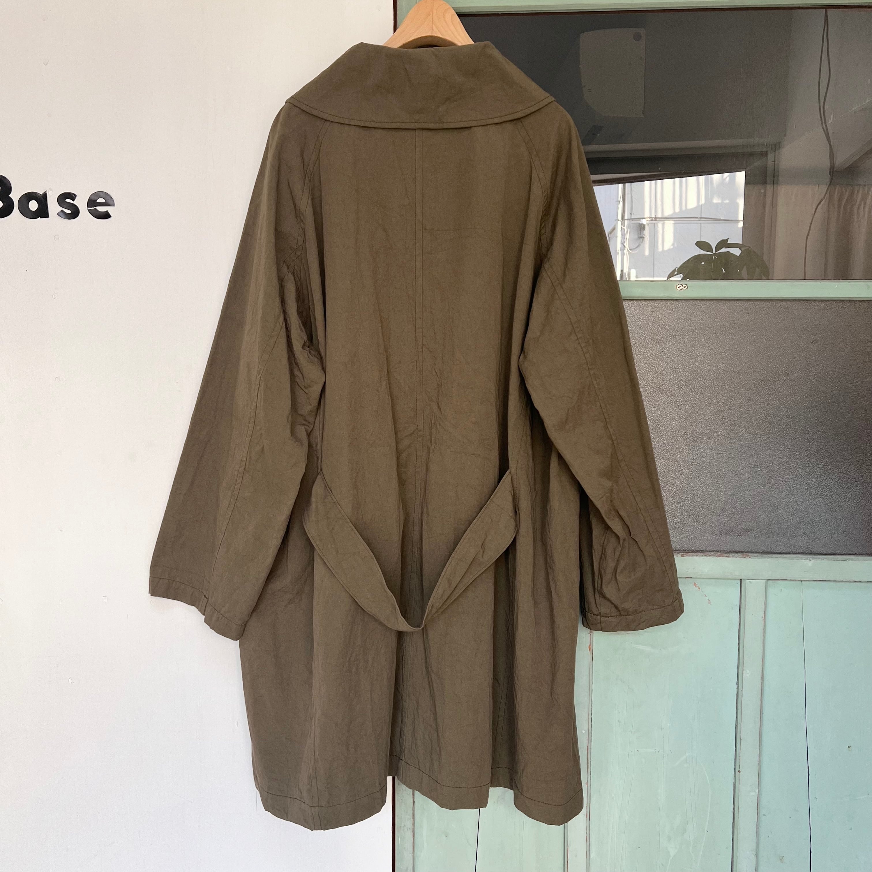 定番のデリコートをベースにPコートの襟、ショップコートのバックベルトをミックスした新型コートです。