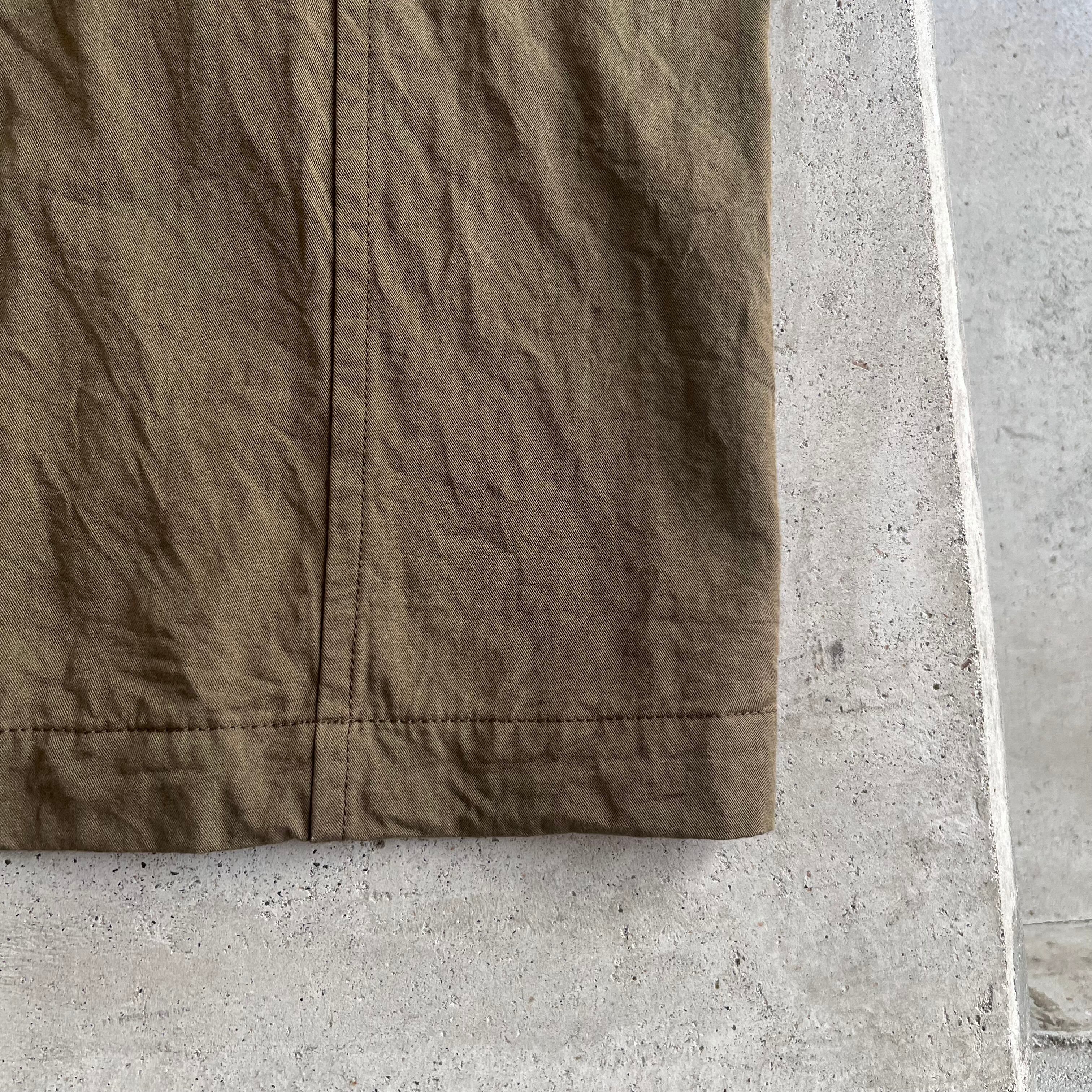 ゆったりとした身幅に膝上丈のバランスで、どんなボトムとも好相性です。