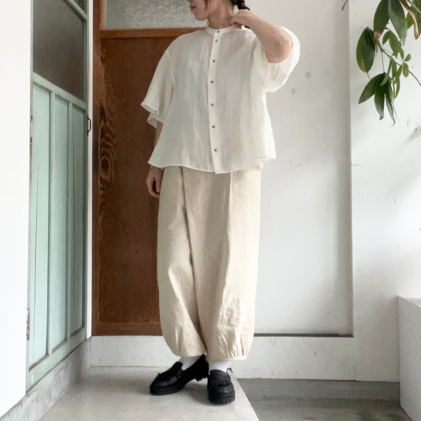 お袖がひらりと揺れる感じがなんとも素敵なリネンシャツです。