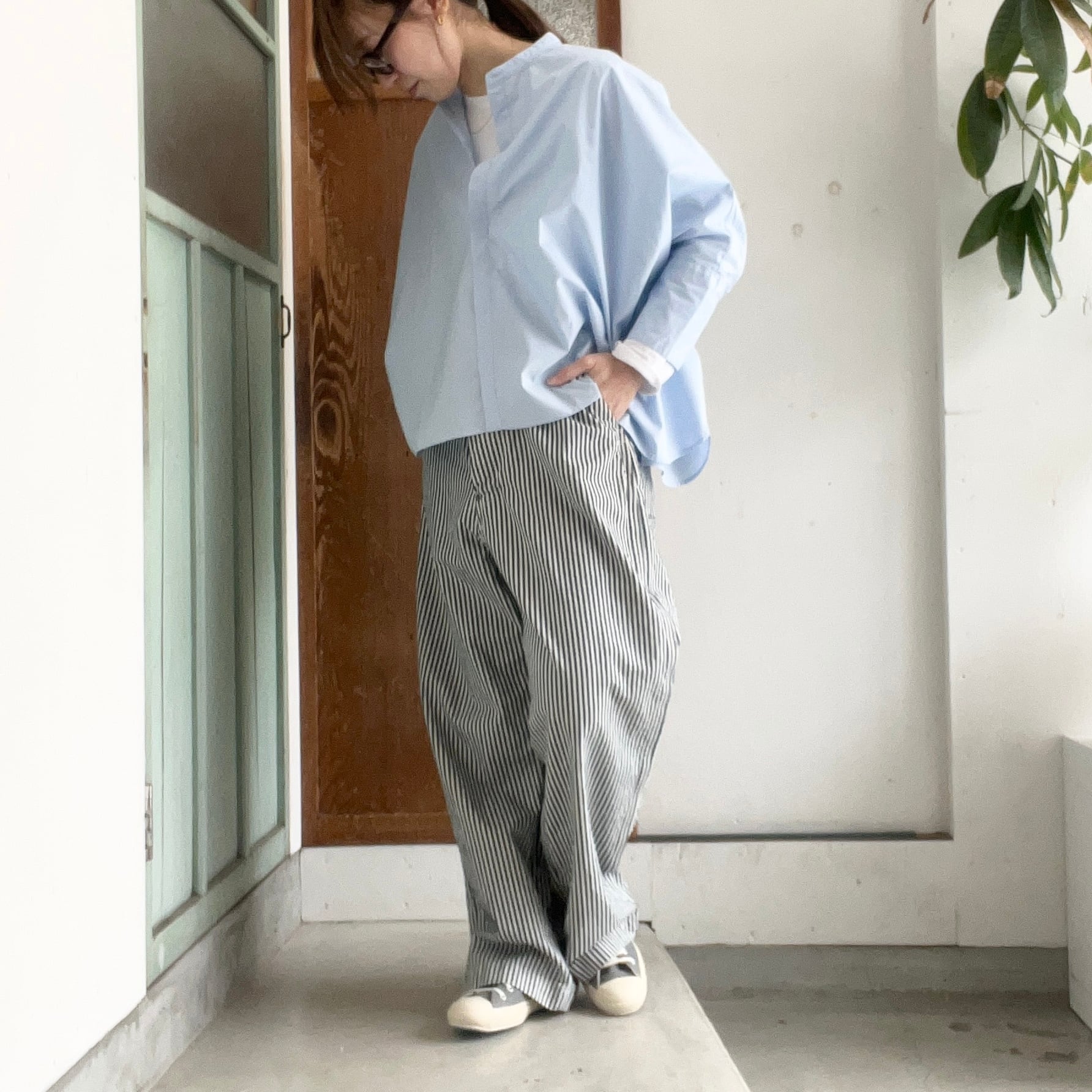UNIVERSAL TISSUのバンドカラーポンチョシャツ。