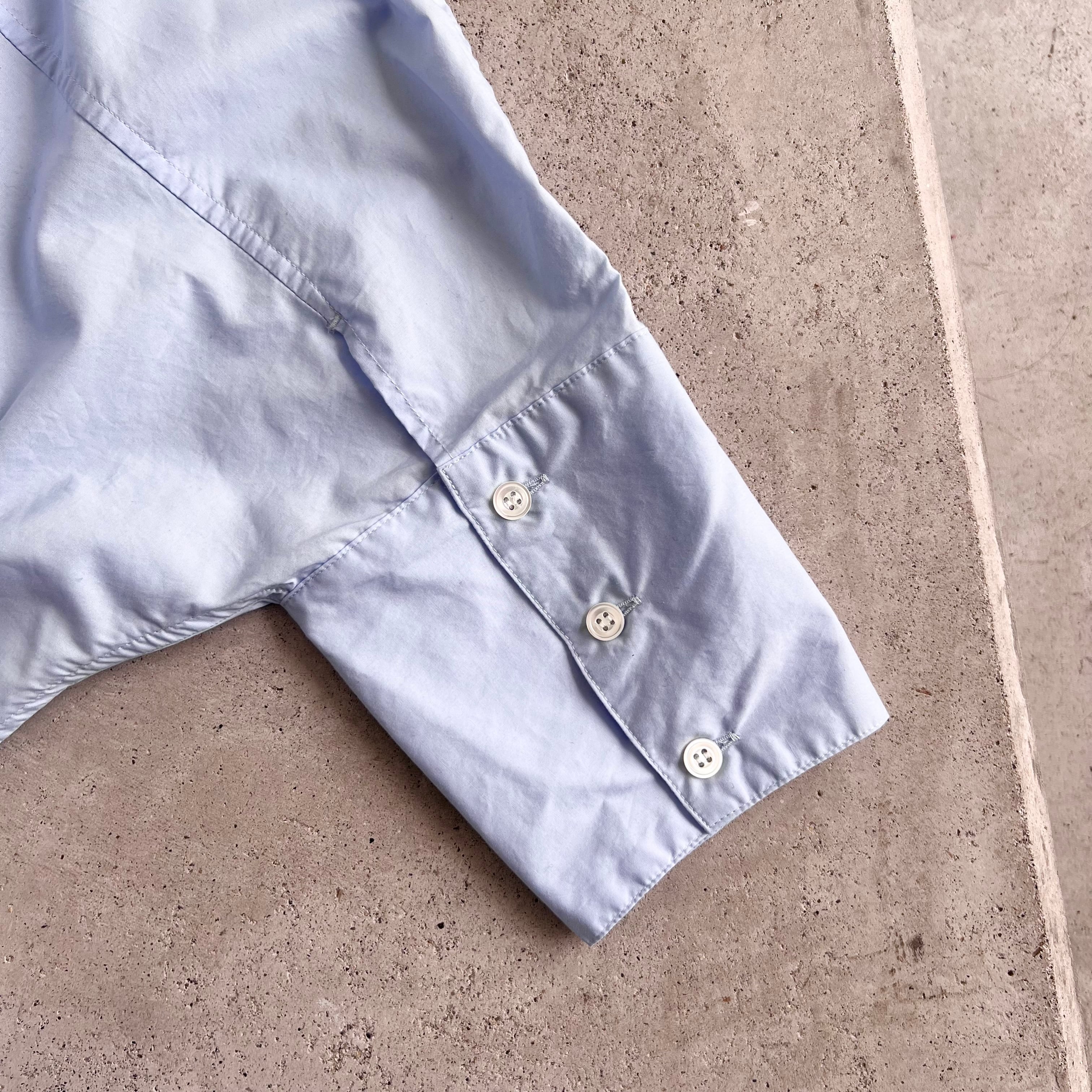 すっきりとしたバンドカラーにフロントは比翼の仕立て。