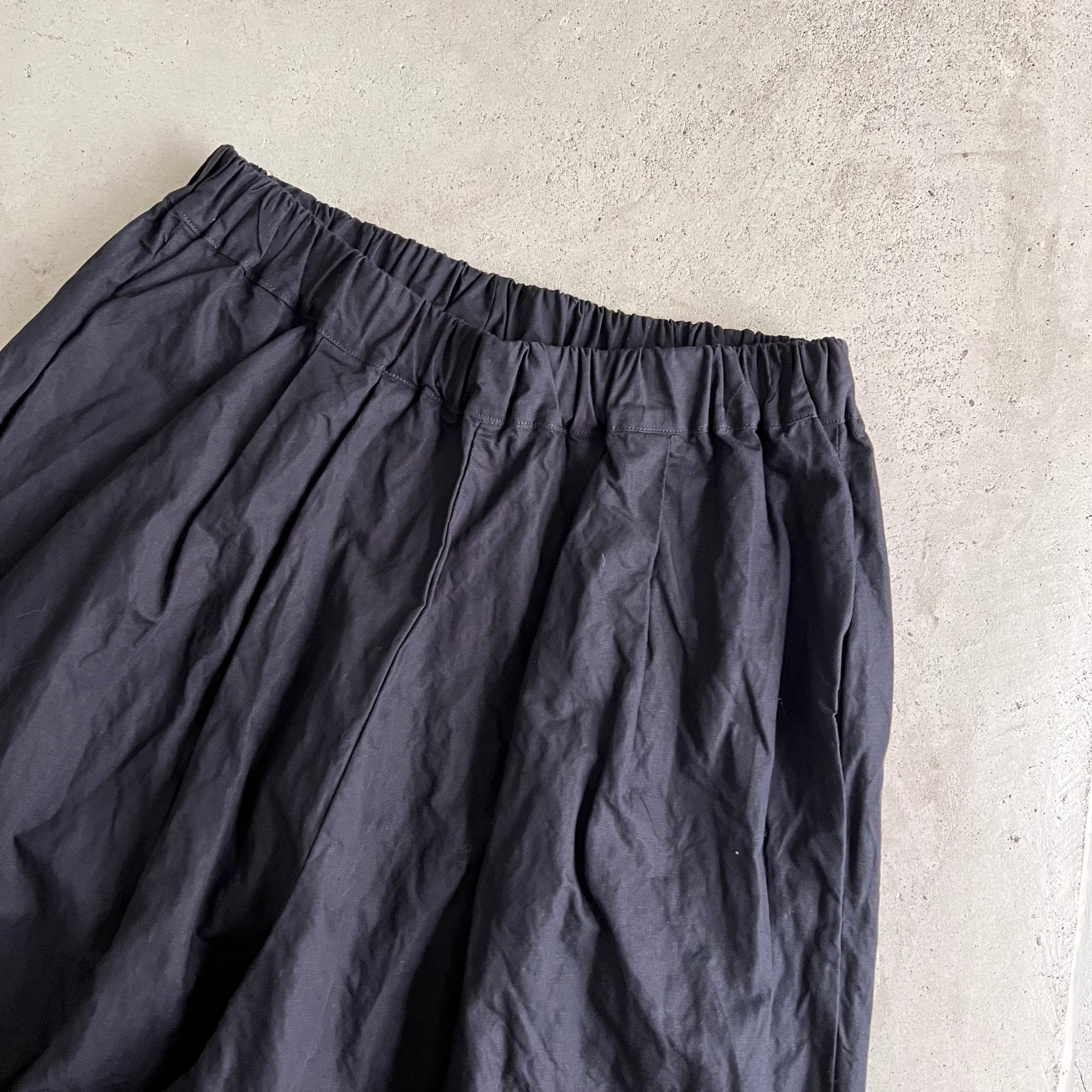 2タックのゆったりとしたサイズ感と、ウエストゴムで楽ちんなはき心地が魅力。