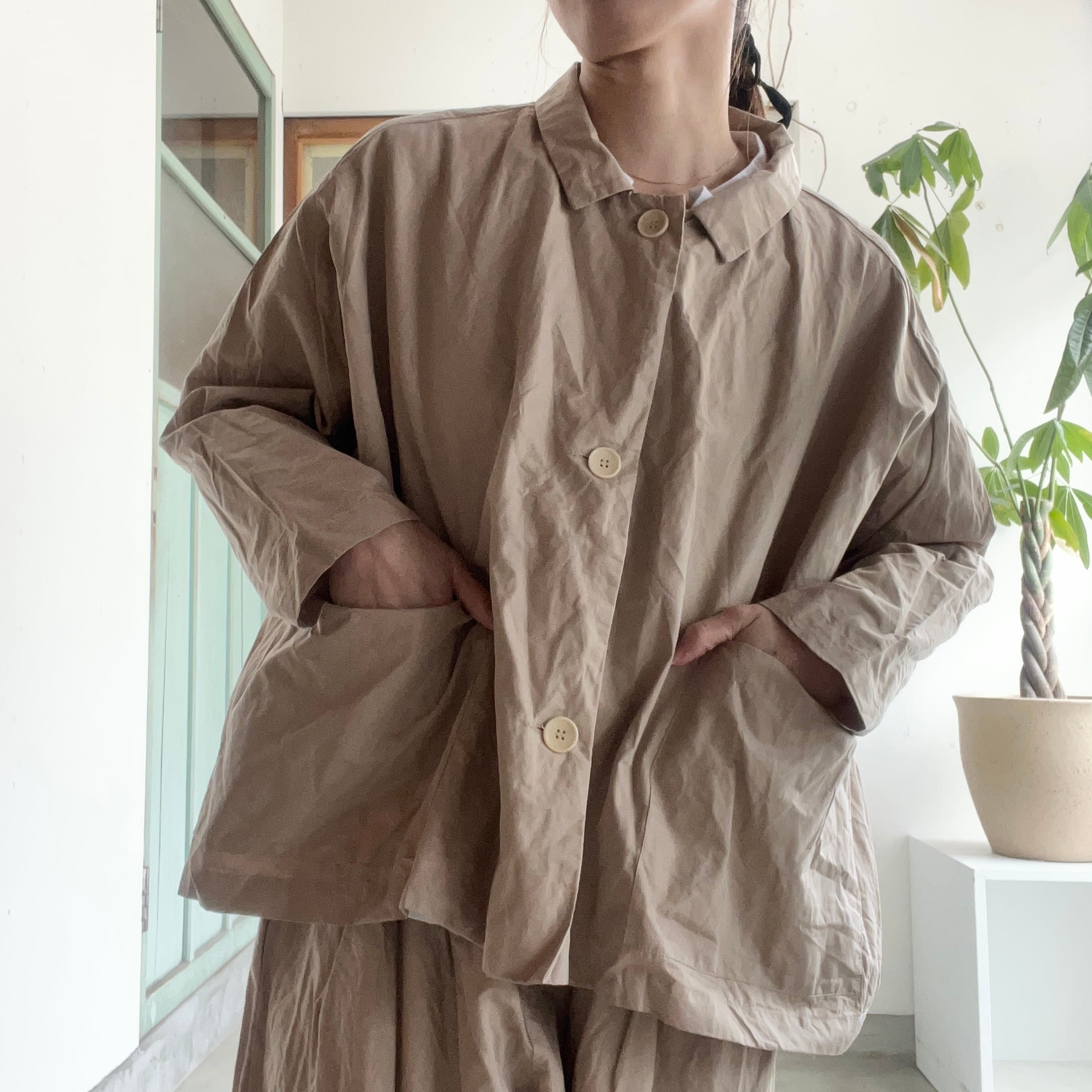 たっぷりとした身幅に、小さめ衿のバランスがギャレゴらしいデザイン。