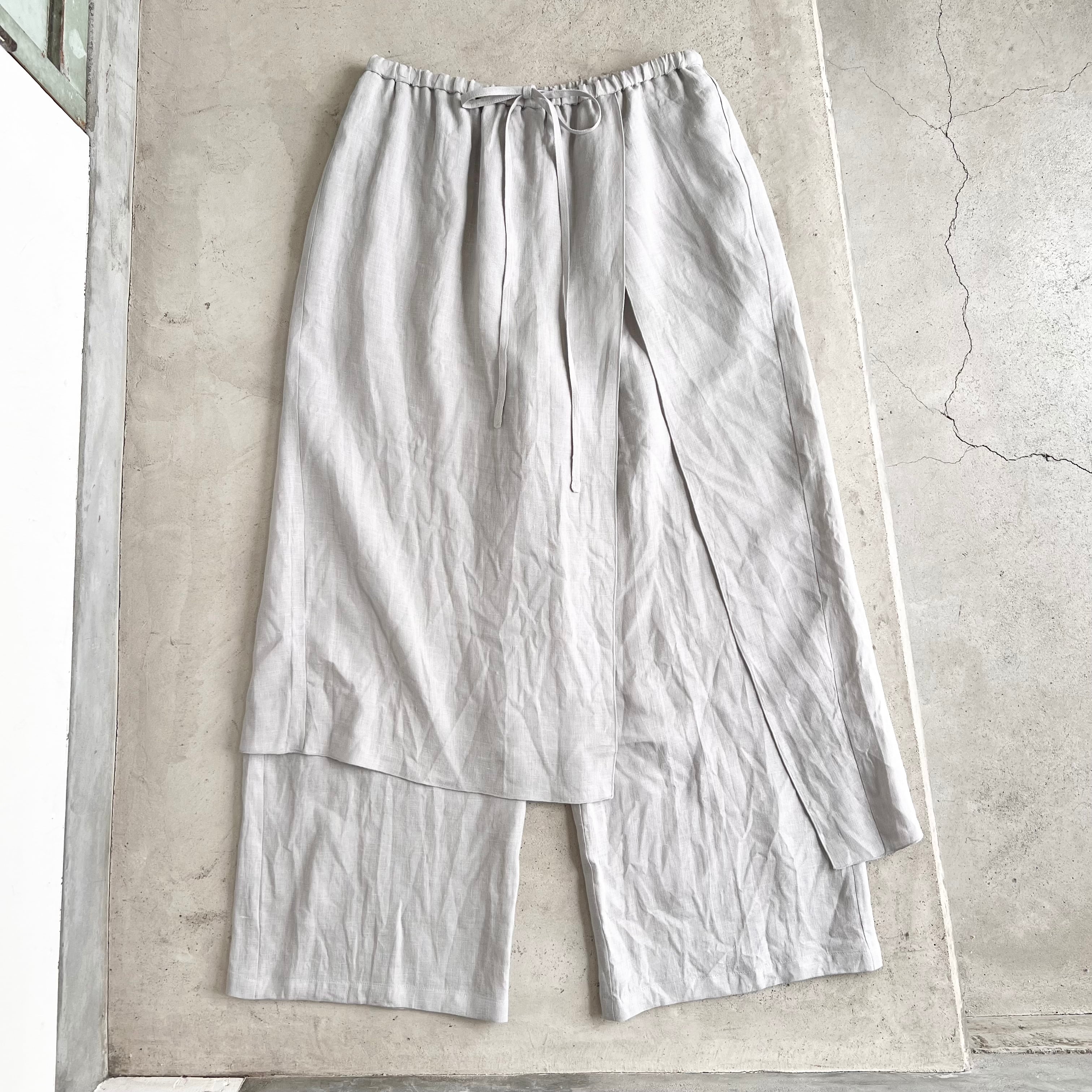 巻きスカートとイージーパンツをレイヤードしたデザインになります。