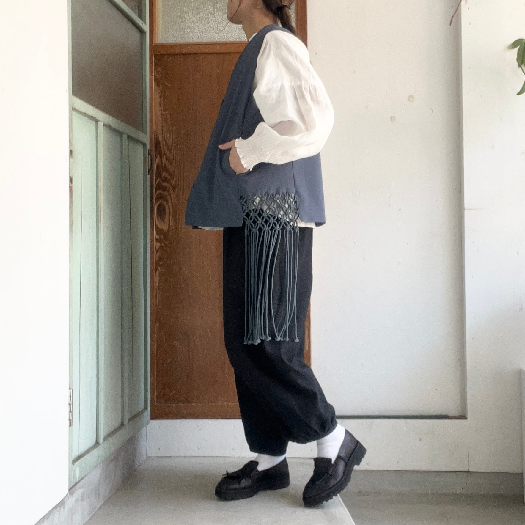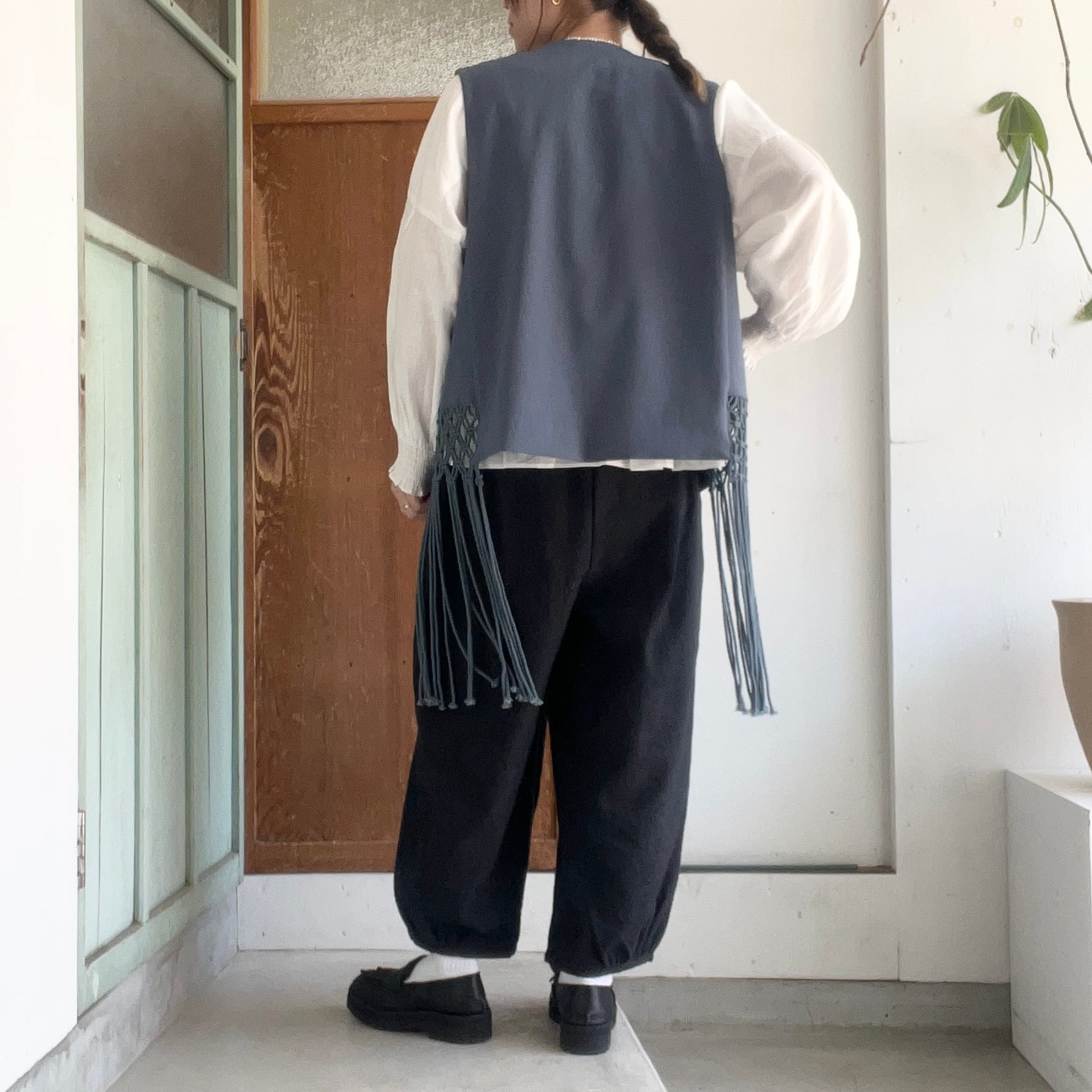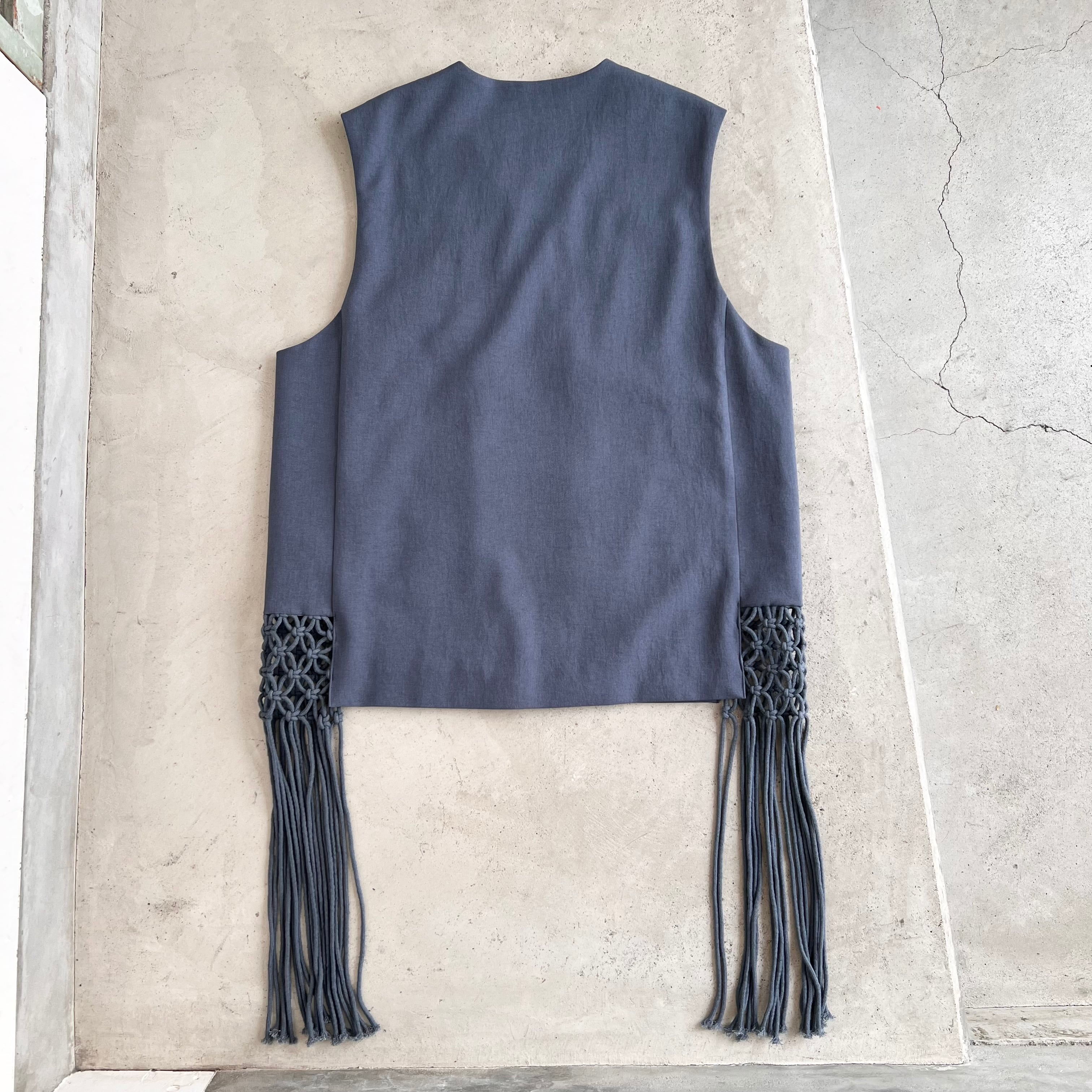両サイドにマクラメのフリンジがついたベストです。