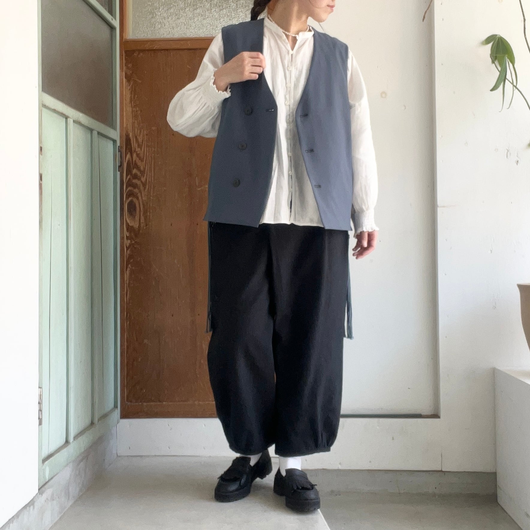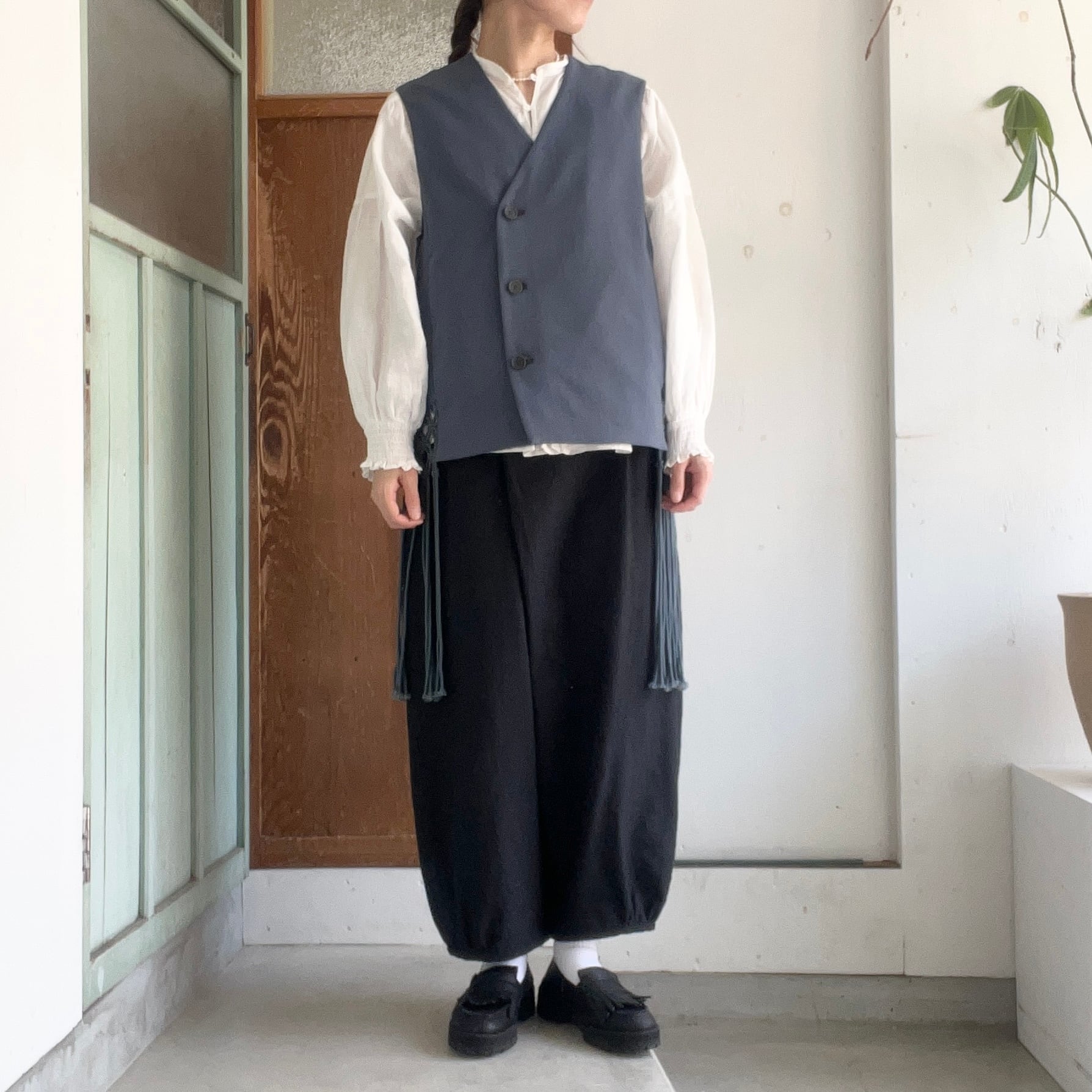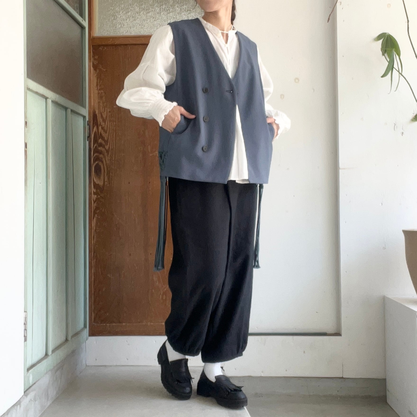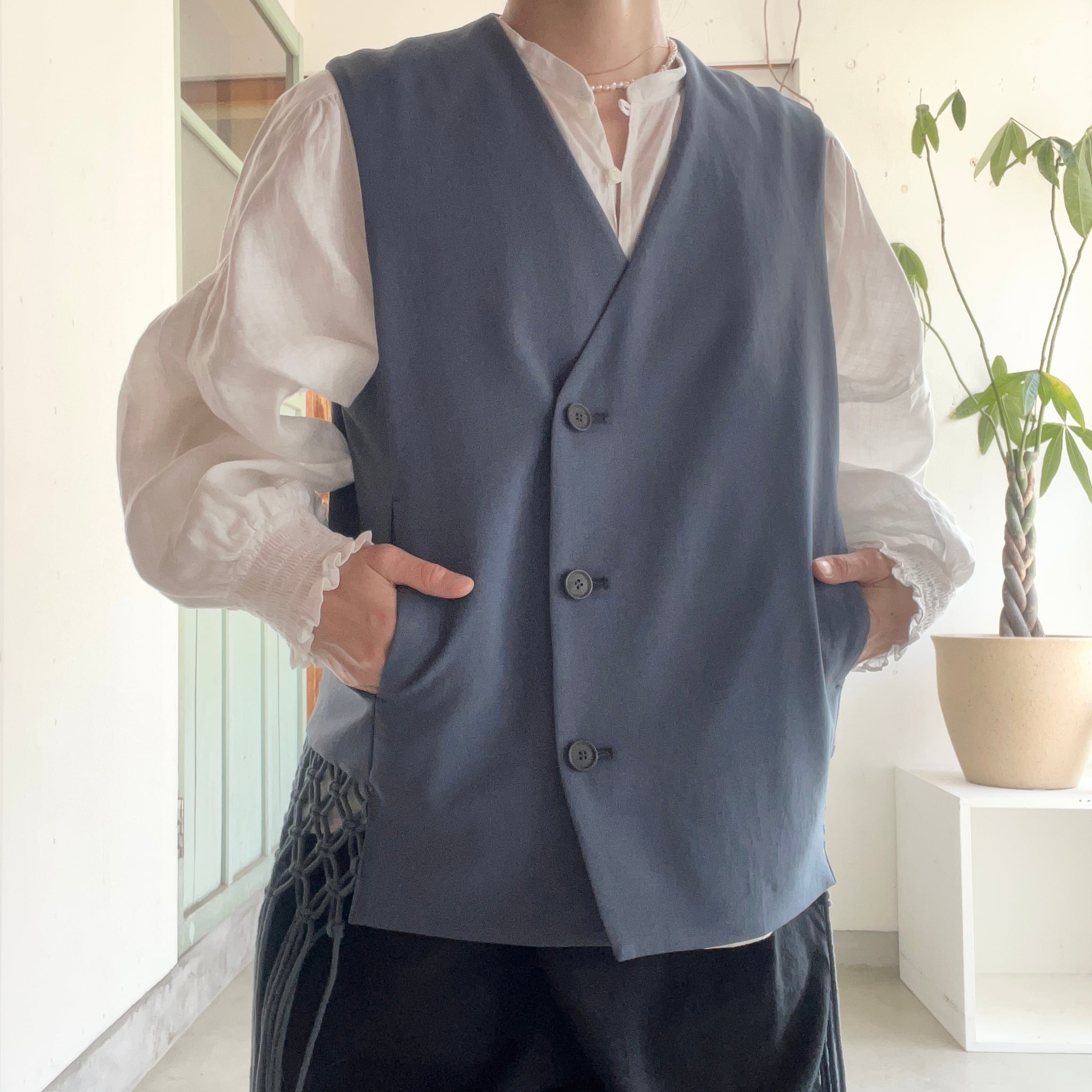 両サイドにマクラメのフリンジがついたベストです。