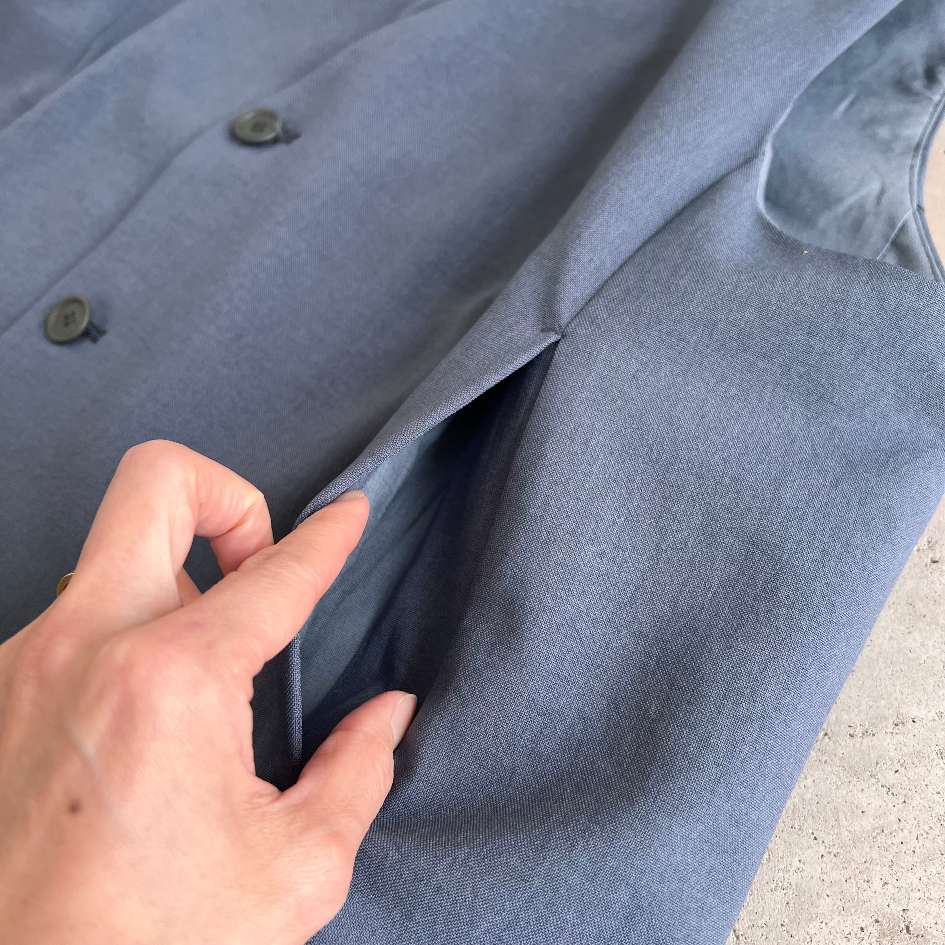 フロントはダブル仕立てで、きちんと感のあるデザイン。