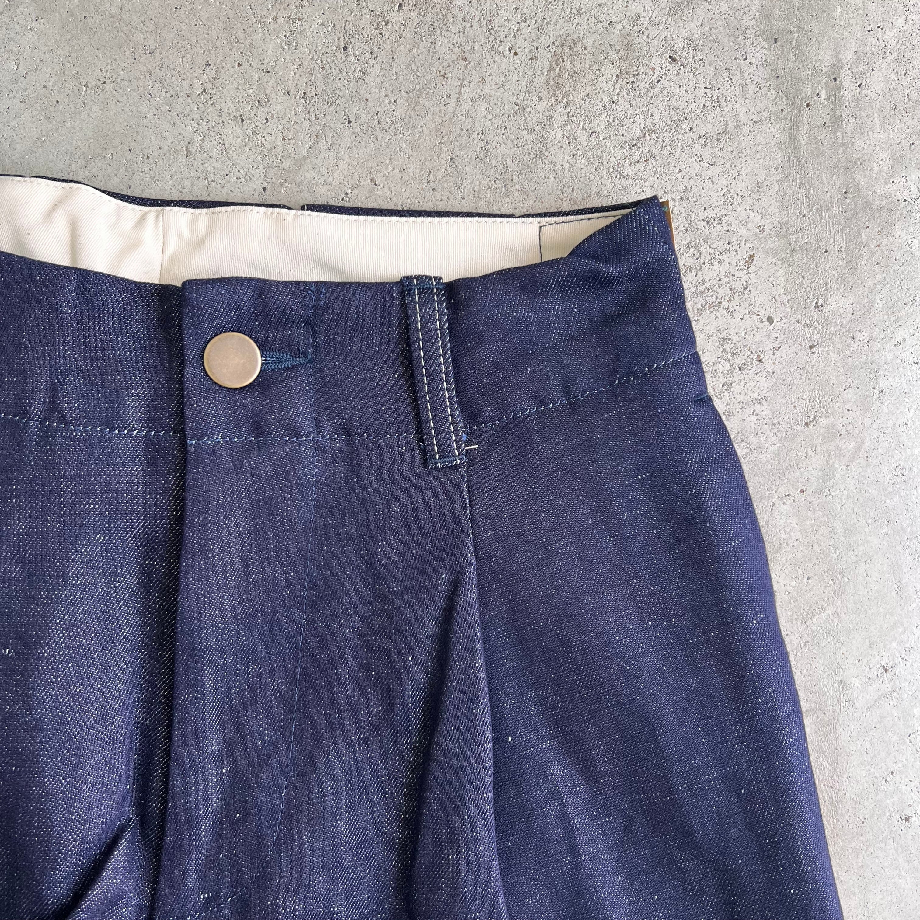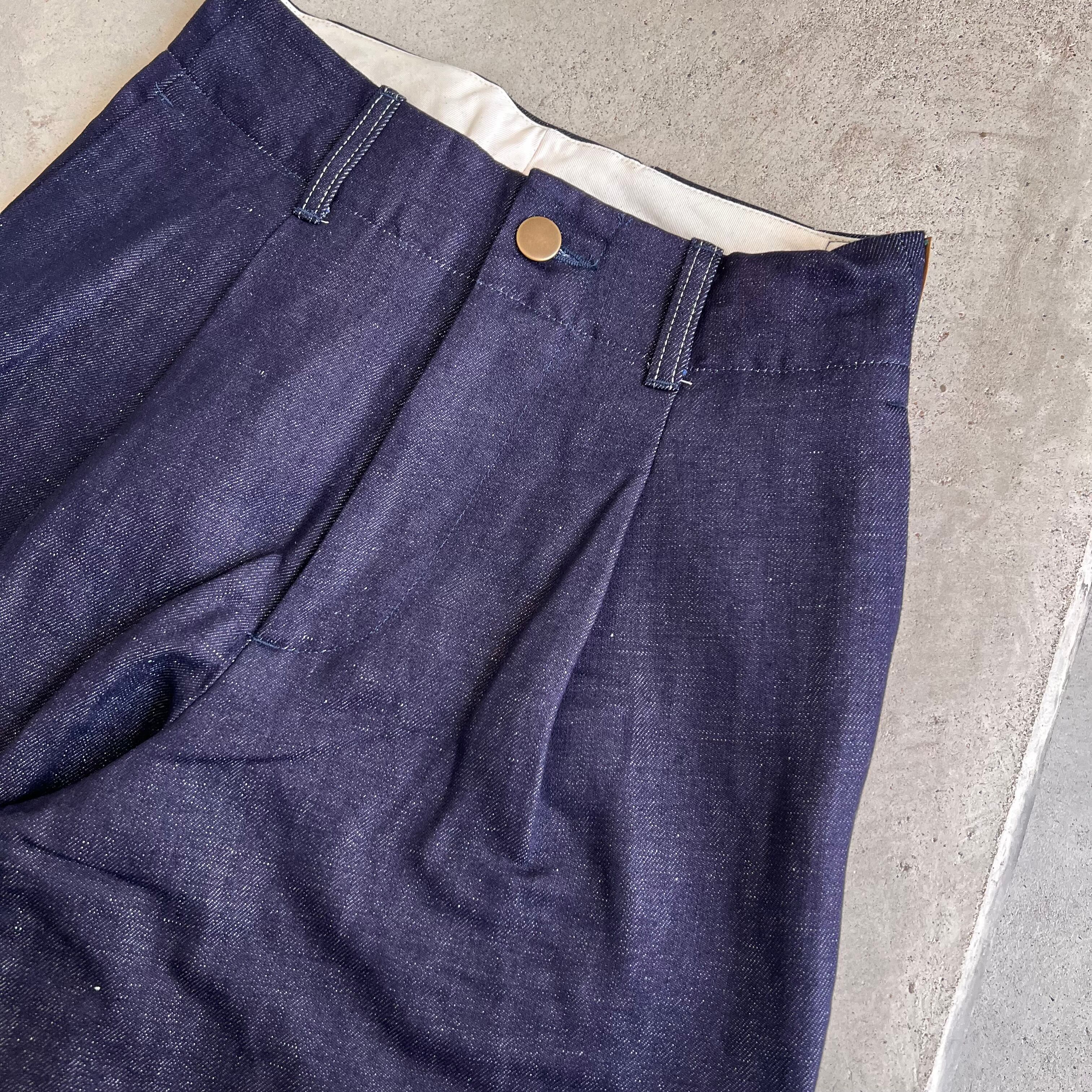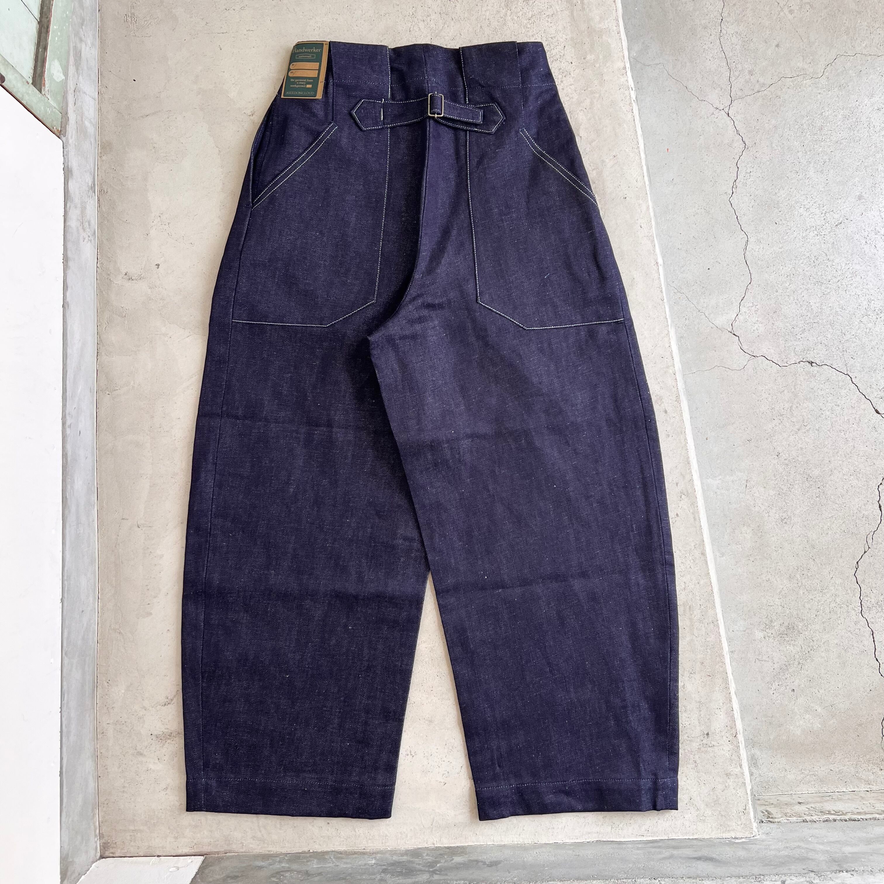 素材は、コットンベースにリネンが混紡された、柔らかさとコシのある、はき心地のよいデニム生地。