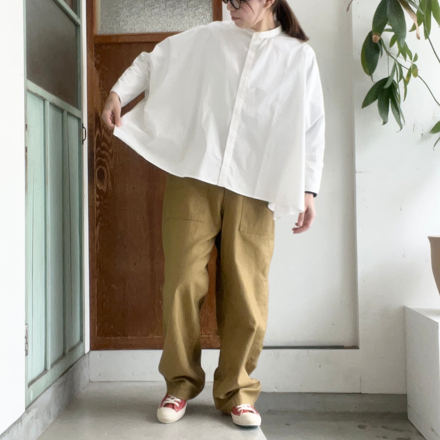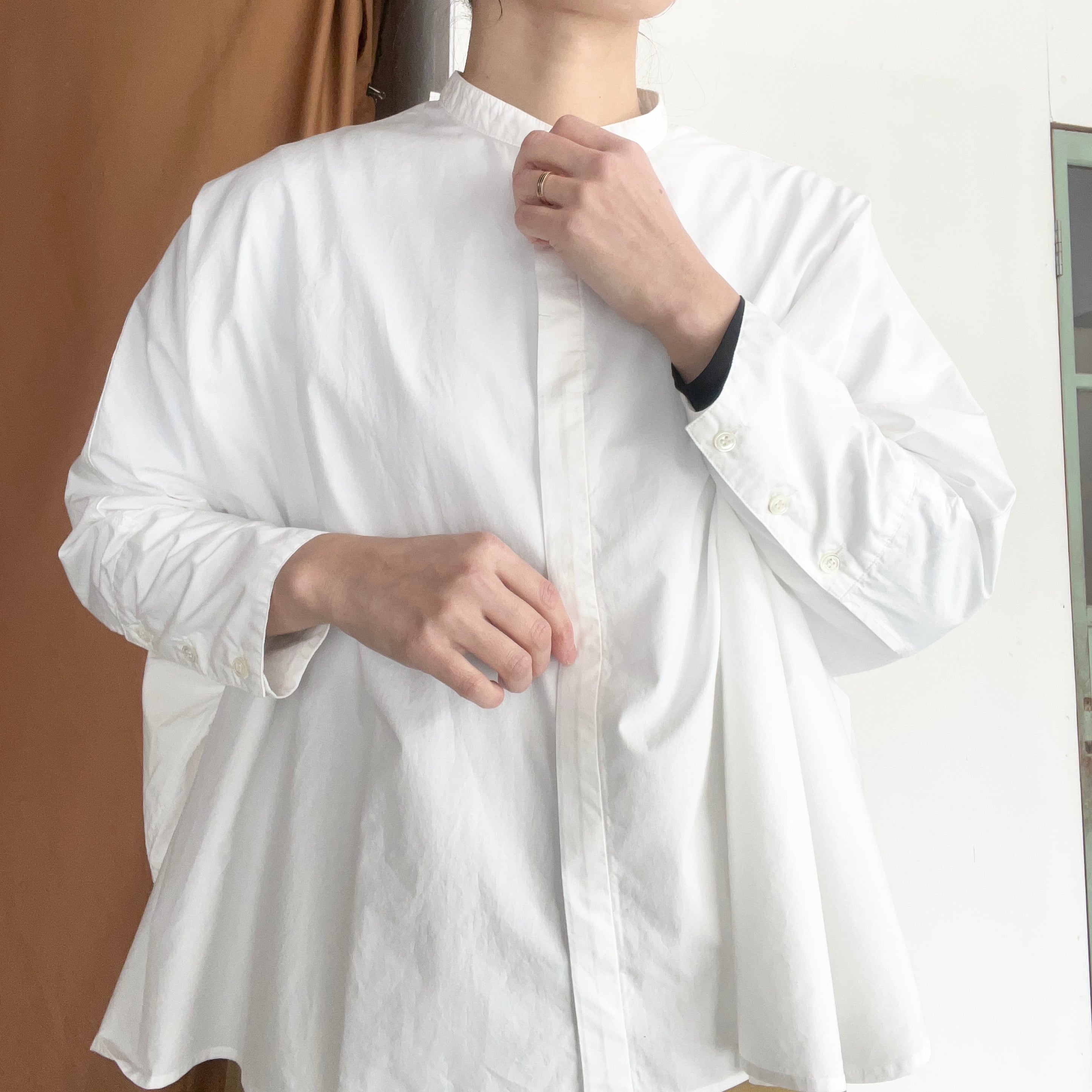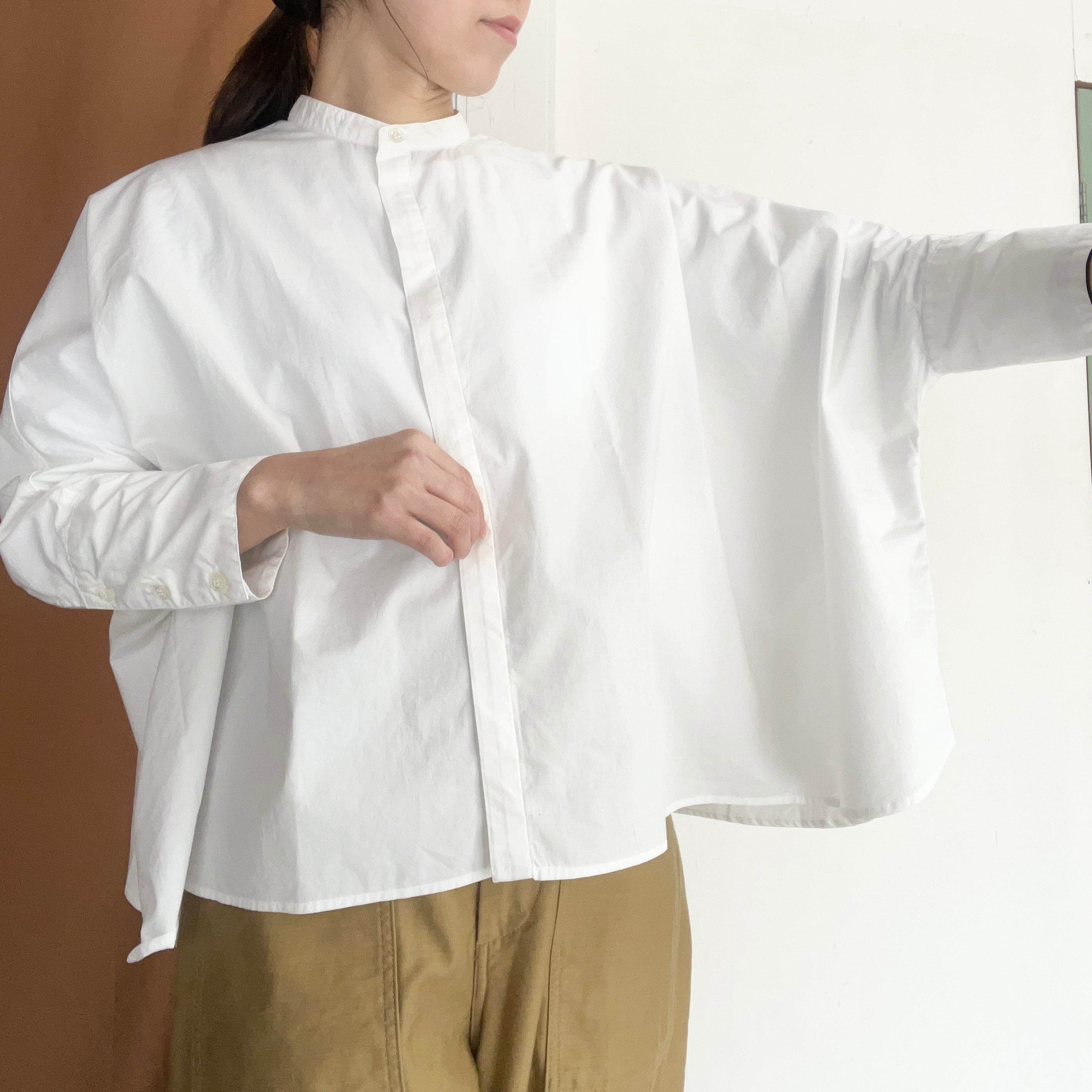 UNIVERSAL TISSUのバンドカラーポンチョシャツ。