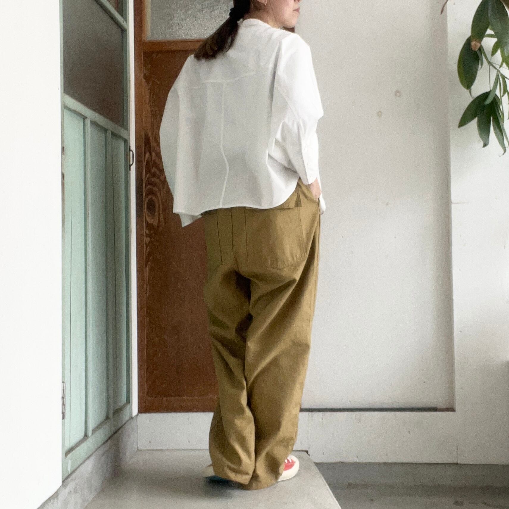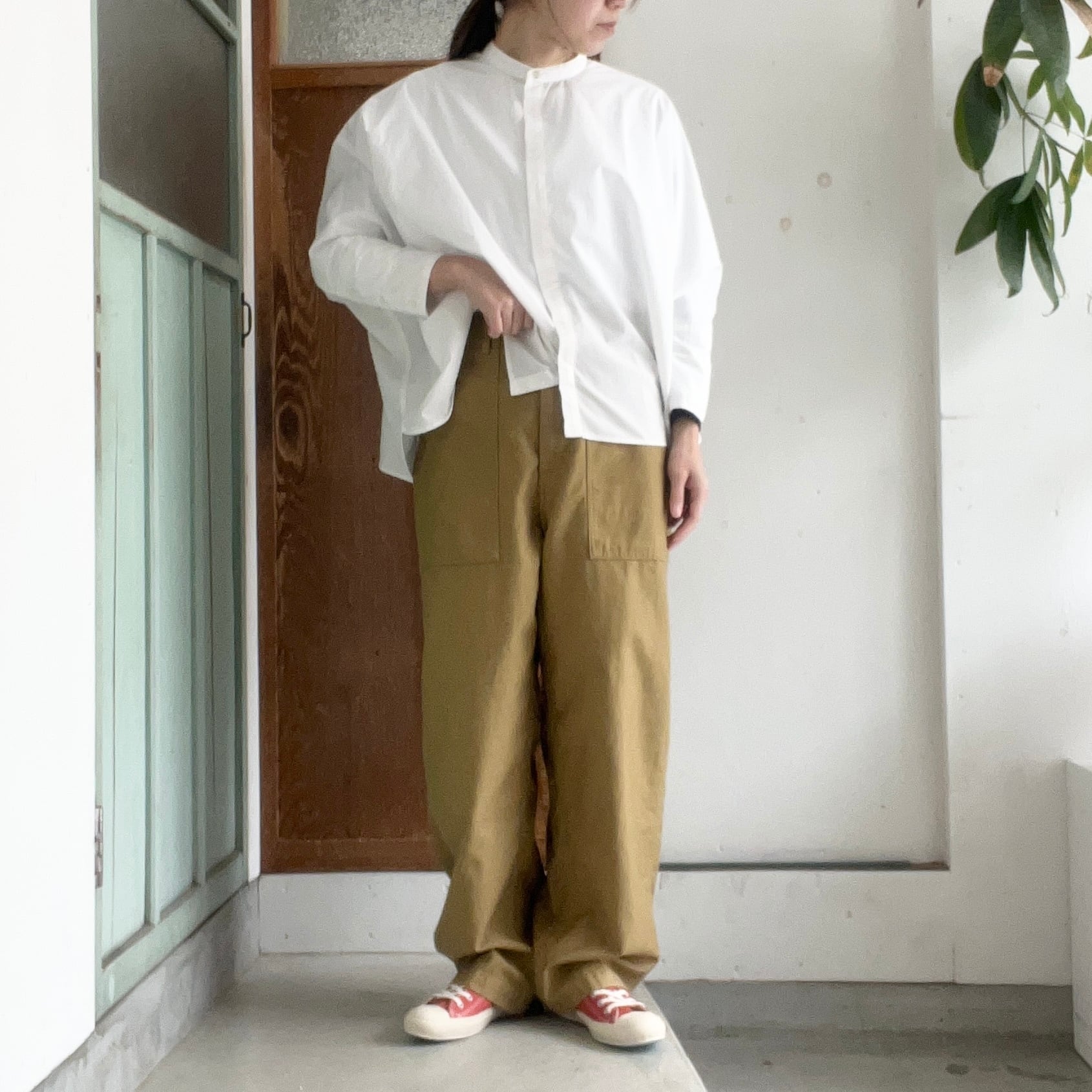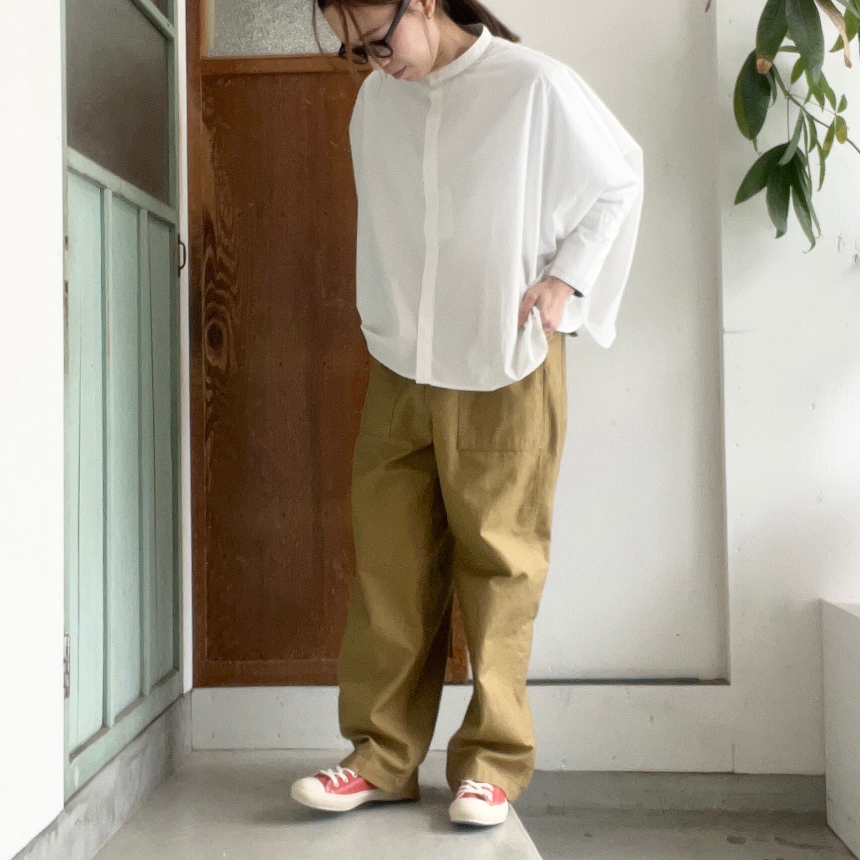 UNIVERSAL TISSUのバンドカラーポンチョシャツ。